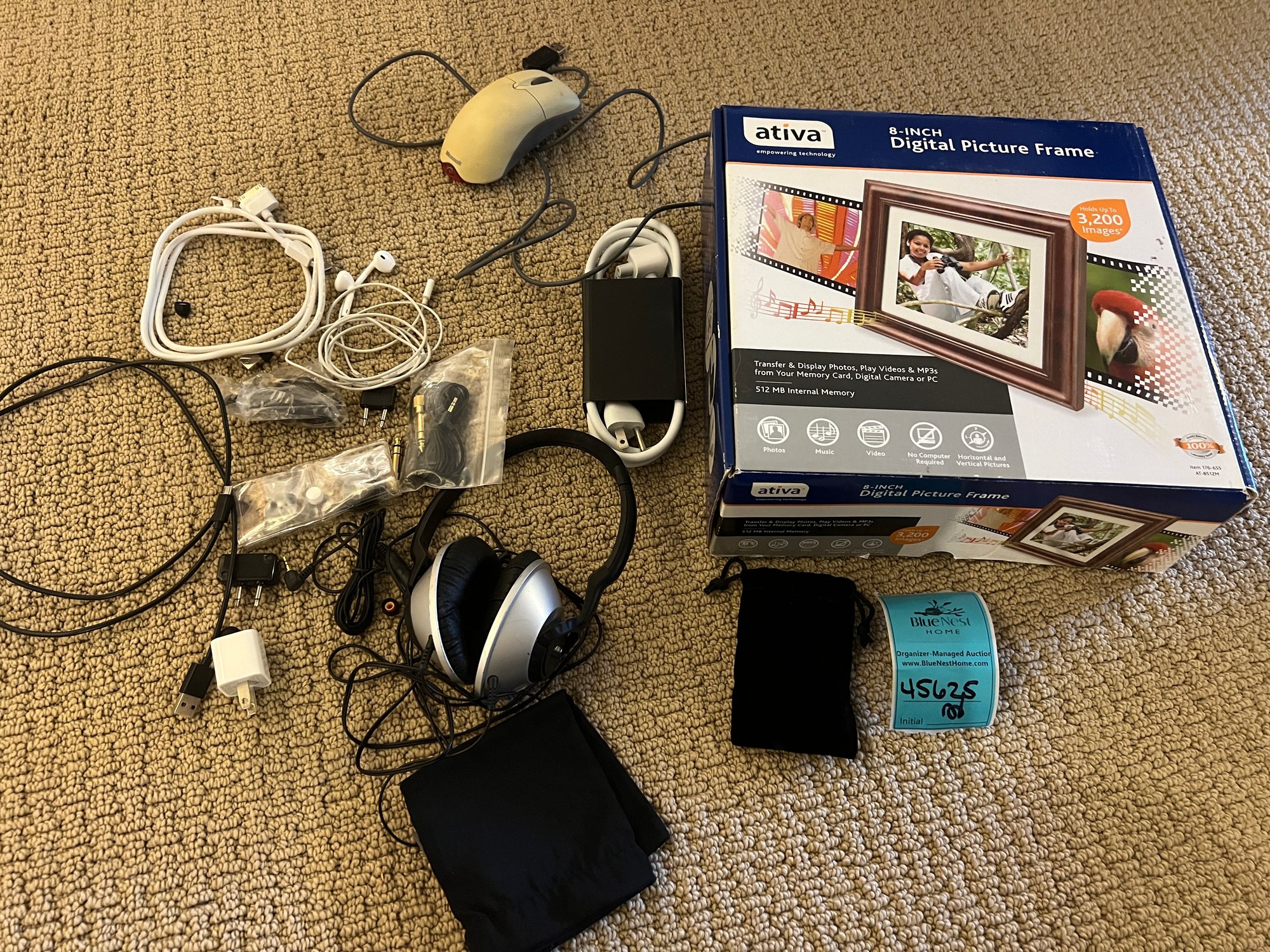 R11 Ativa Digital Picture Frame New In Box, Never Used. Various Cables, Bose Wired Head Phones untested
