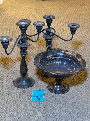 R11 Wallace Baroque Pattern Silverplate Candelabras And Pedestal Bowl