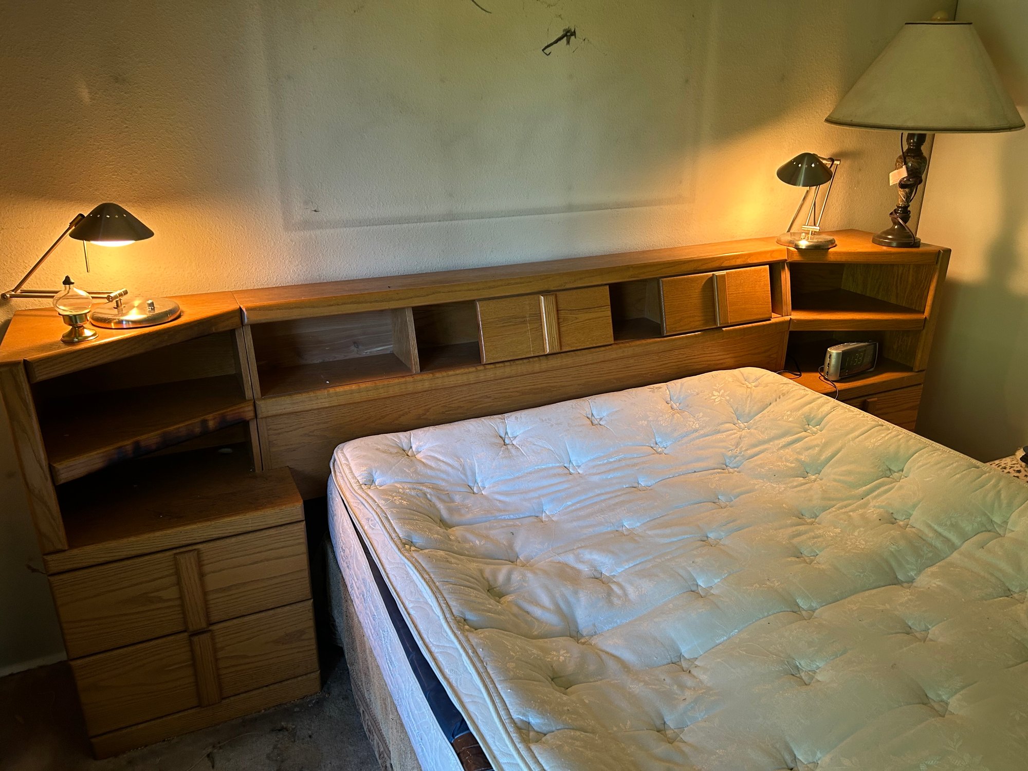 R11 Wooden Headboard With Cabinets, Three Lamps, Digital Clock, Small Candle Holder