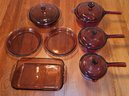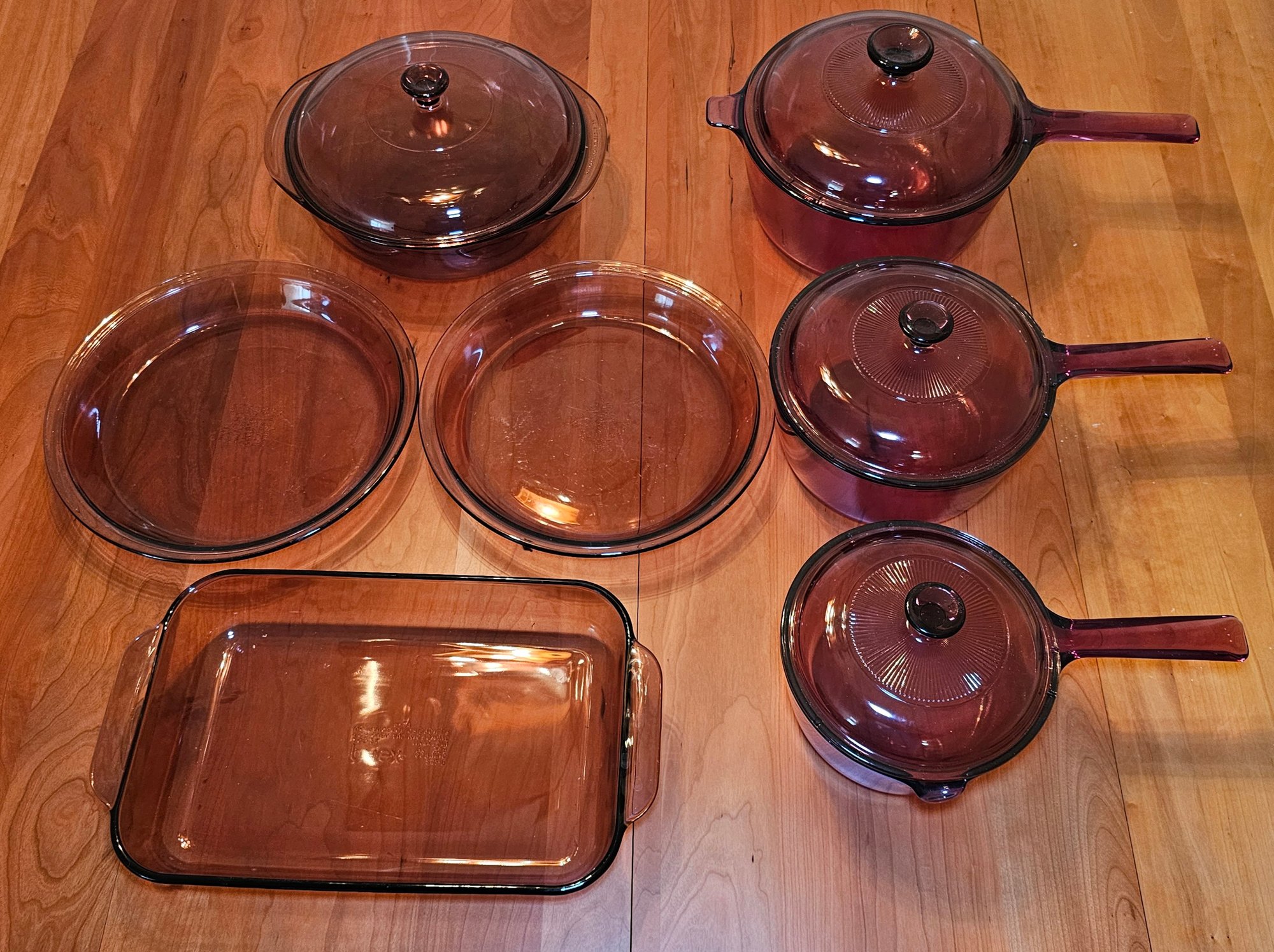R2 7ct Mix Of Vintage Cranberry Pyrex And Corning Cookware