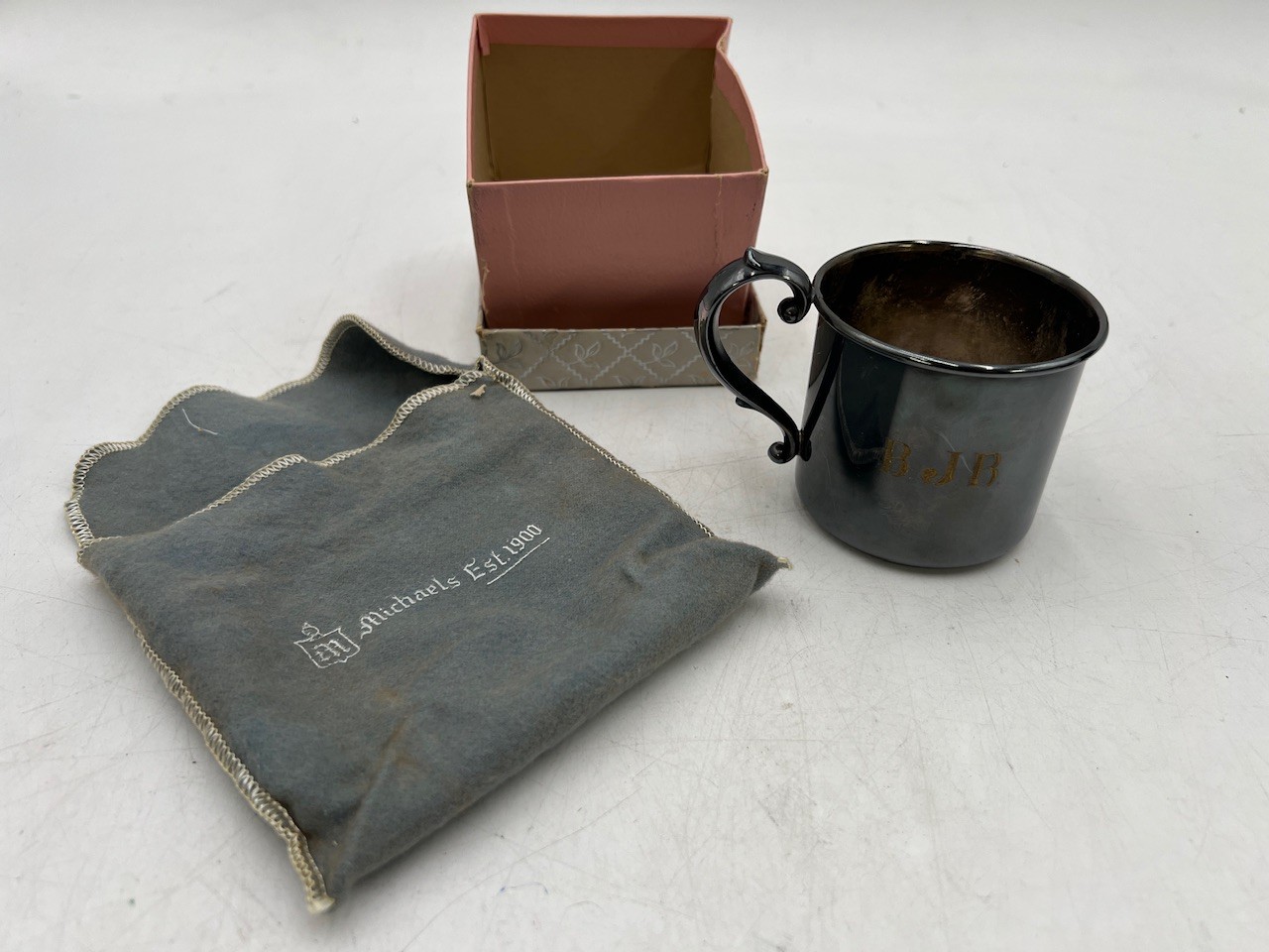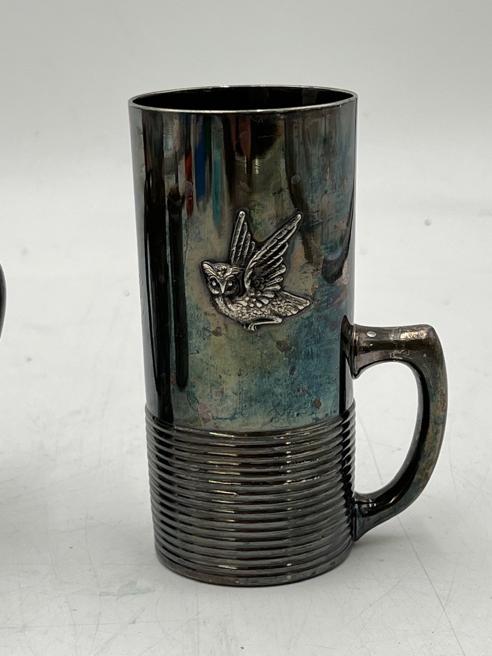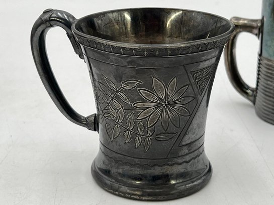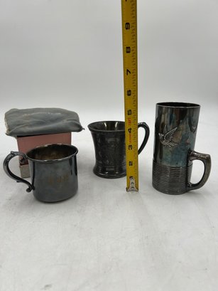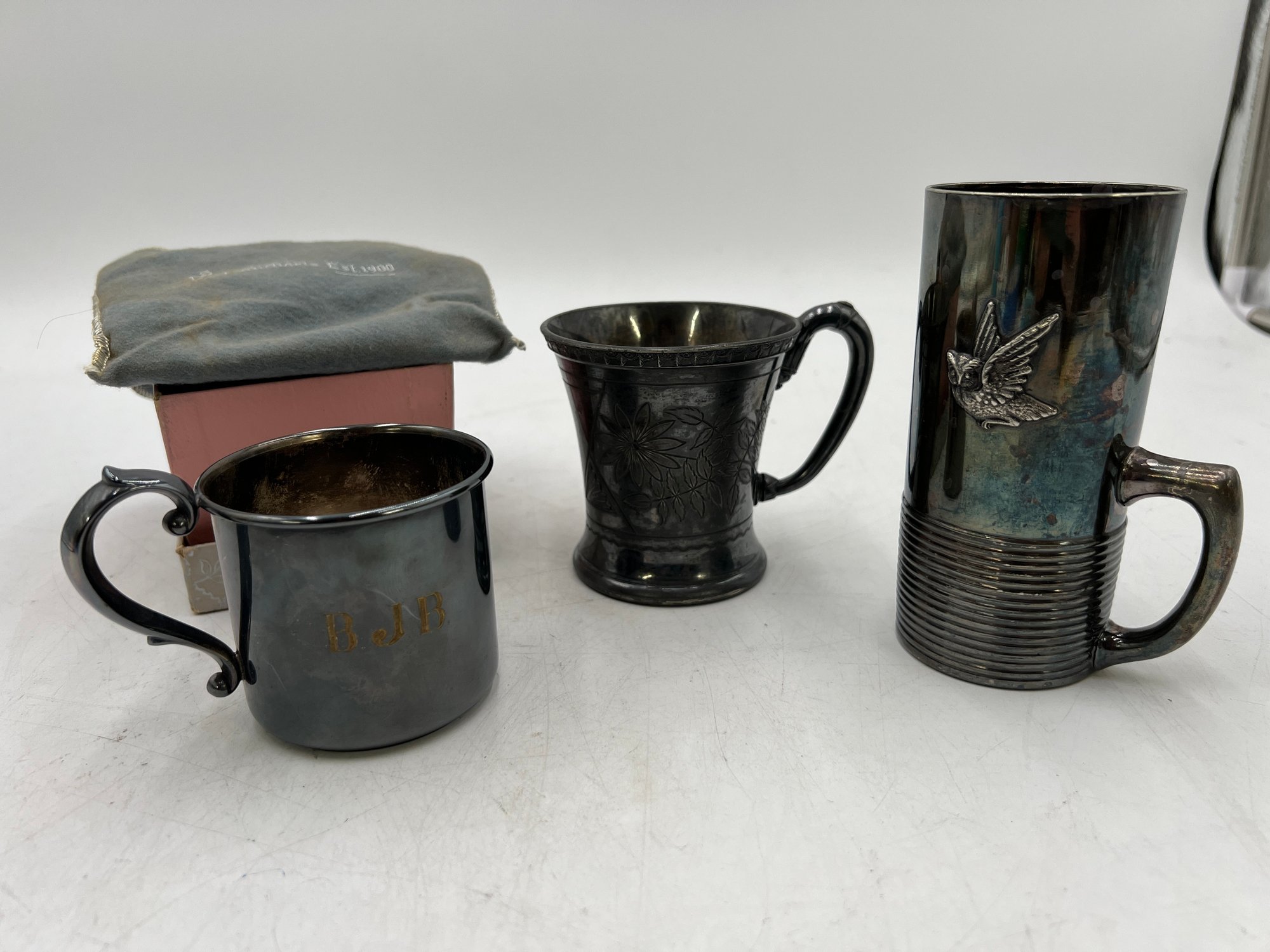 R2 Antique New In Box Webster Co Silverplated Baby Cup, Rockford Silver Quadruple Plated Cup, Reed & Barton Silver electroplated owl mug