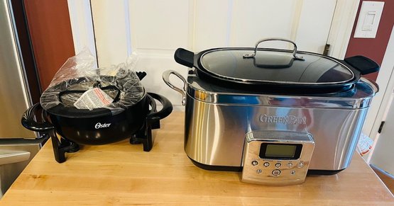 R2 GreenPan Elite 6-Quart Programmable Electric Slow Cooker Plus Oster Fondue 3Qt Pot