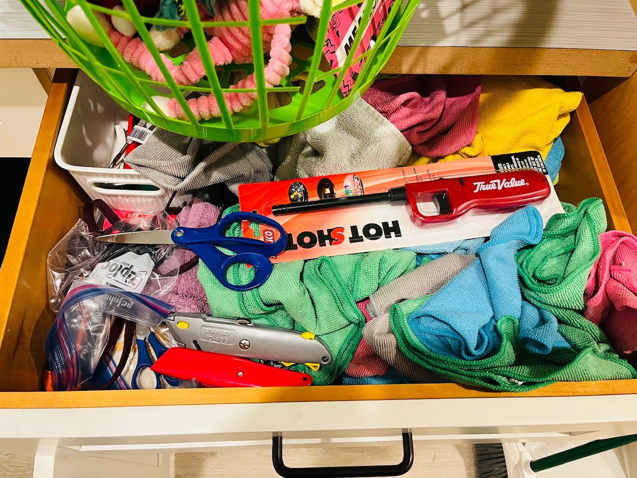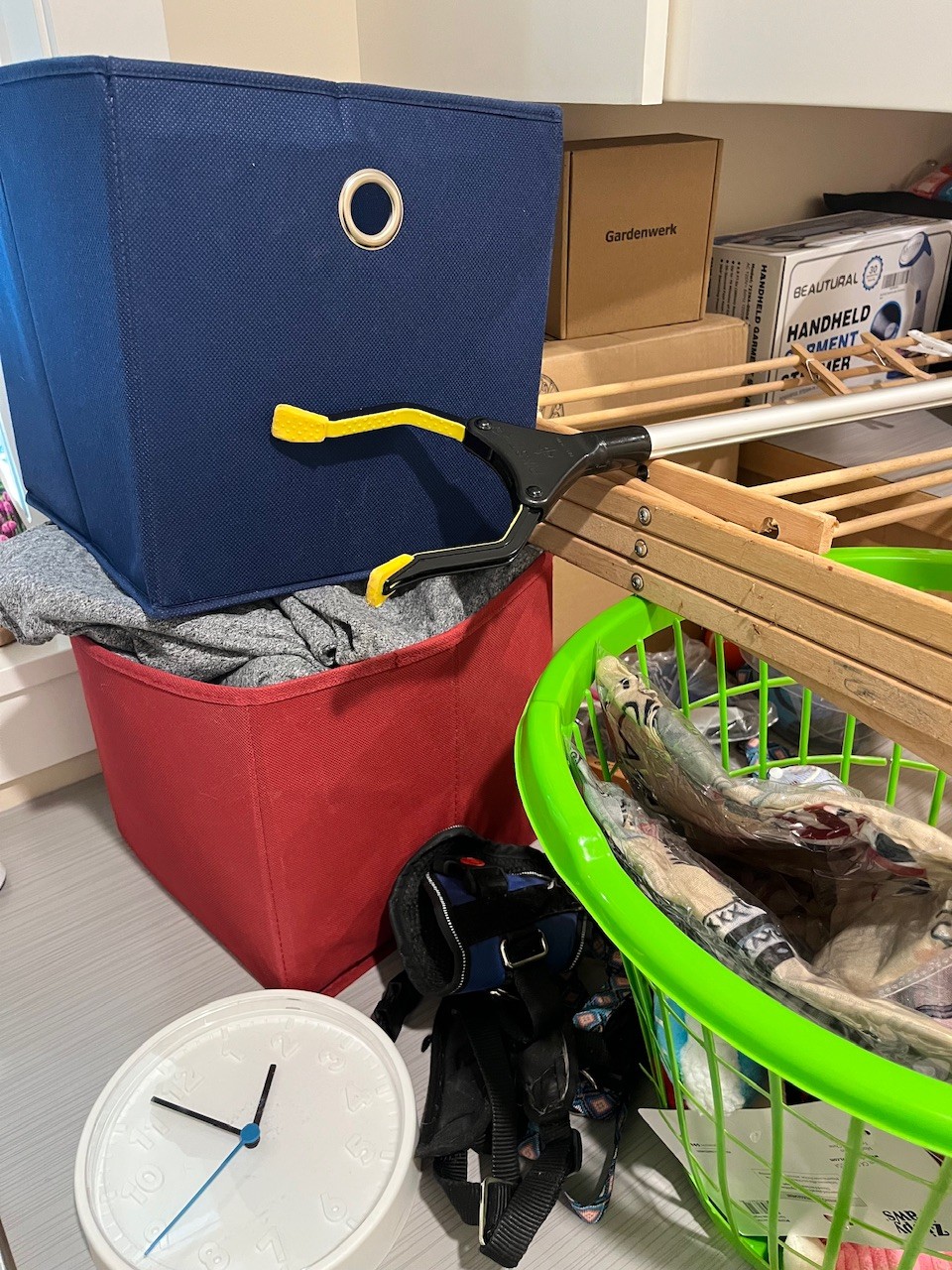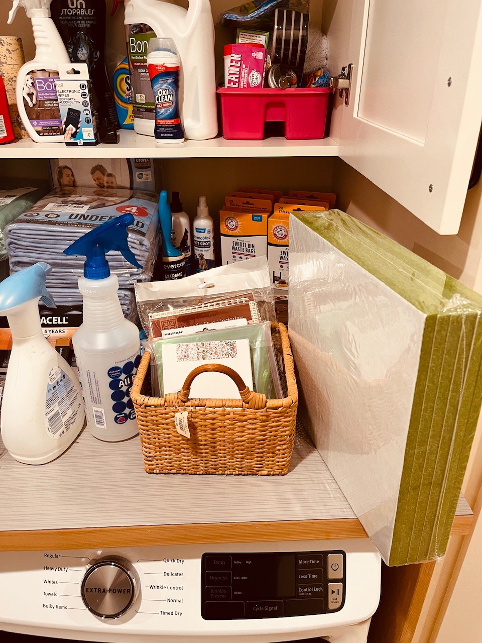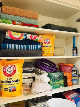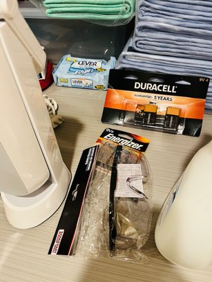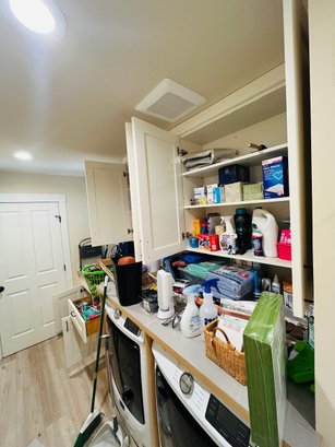 R2 Huge Laundry Room Lot Includes Laundry Basket, Light Bulbs, Pet Supplies, Drying Rack, Towels