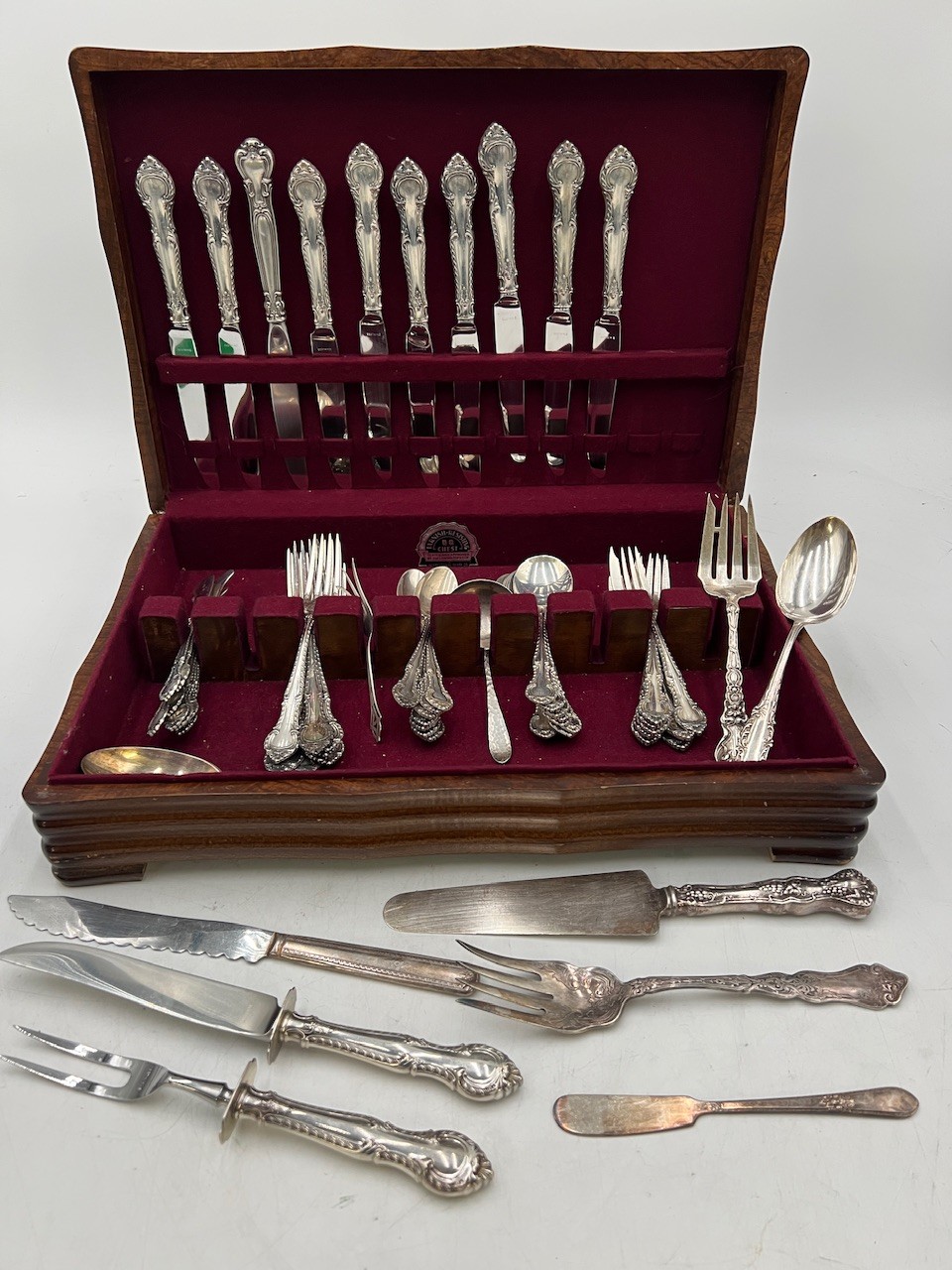 R2 Sterling Silver Flatware Set And Additional Pieces not part of sterling set and not marked sterling.