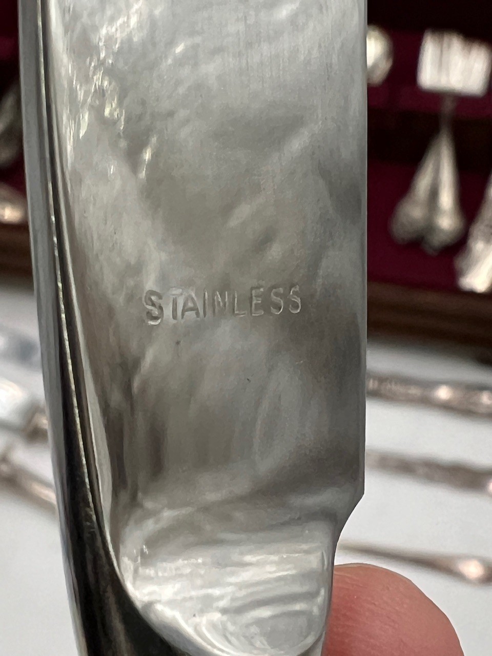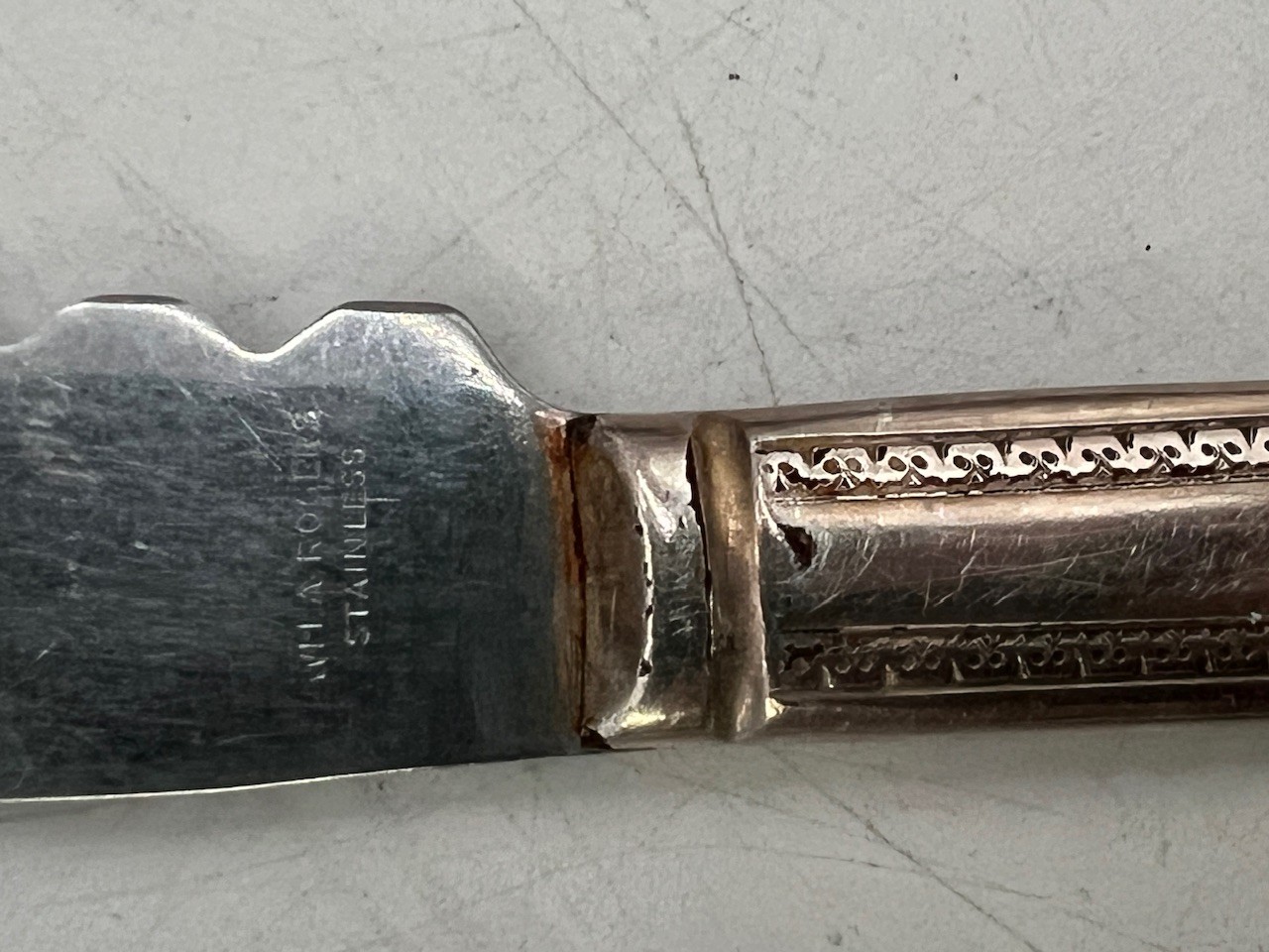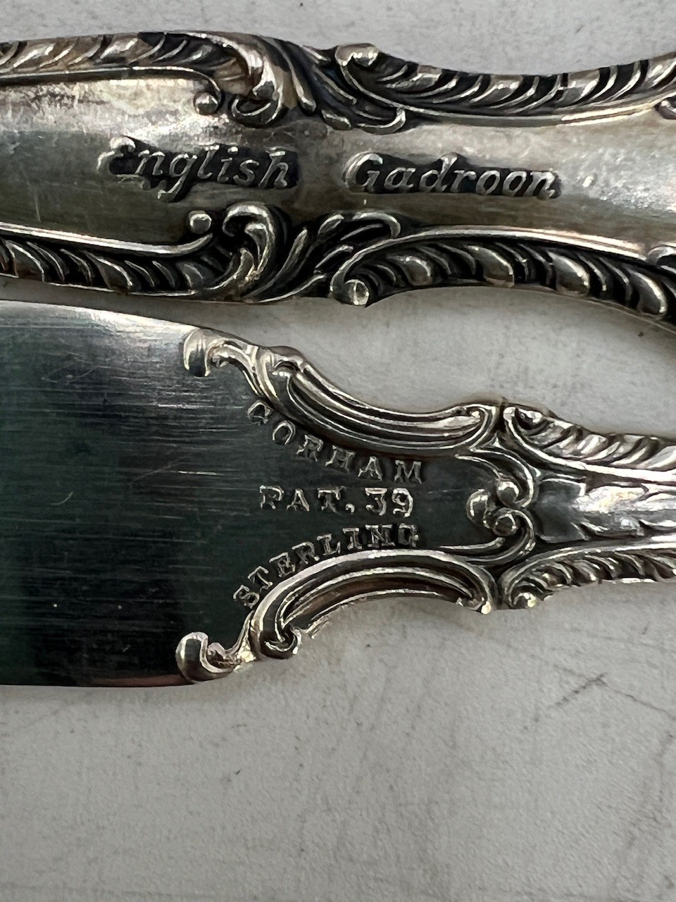 Knives that are part of the Gotham sterling are marked stainless in blade but unable to find any other markings indicating content.