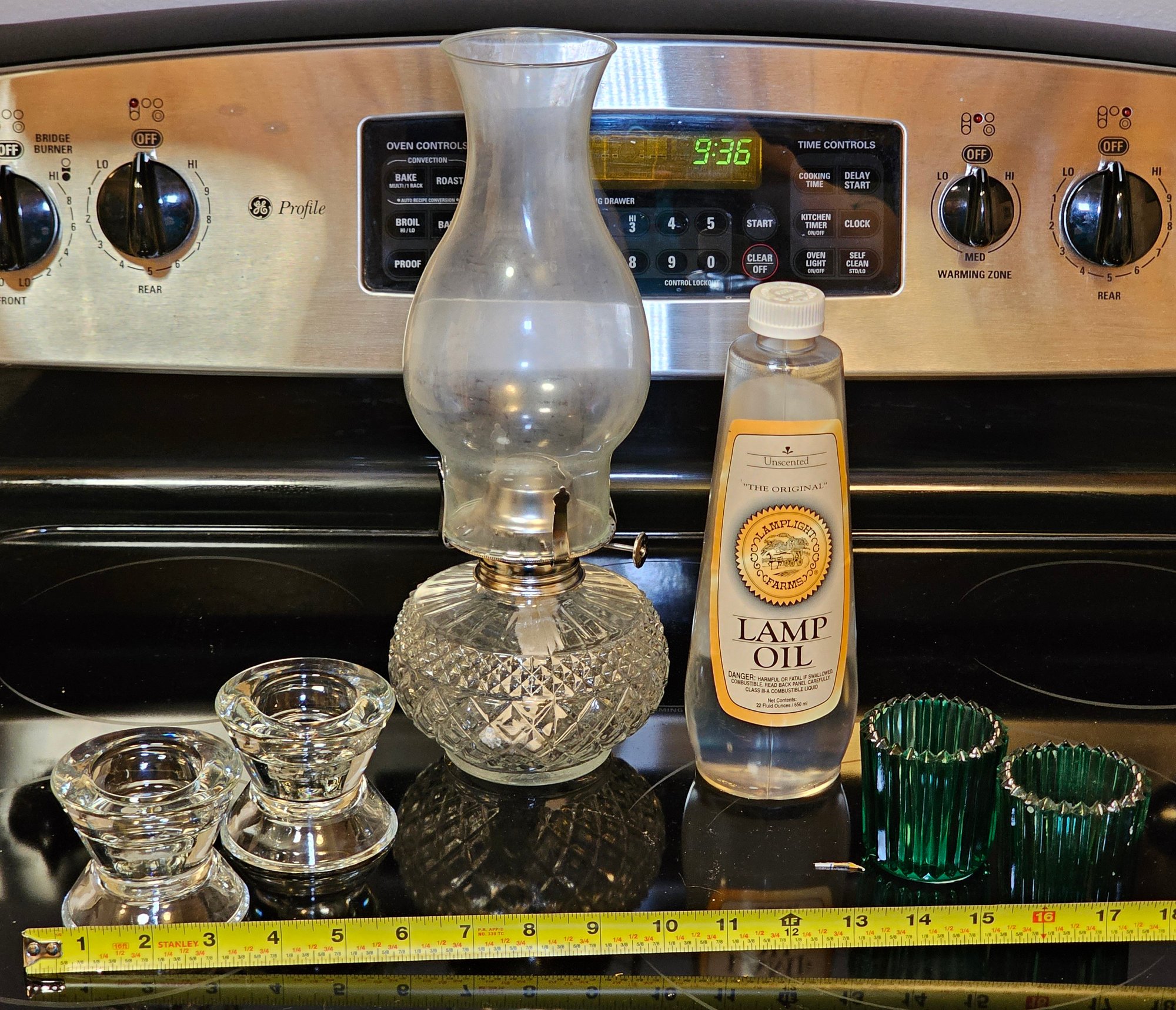 R2 Vintage 1985 Lamp Light Farms Oil Lamp With Lamp Oil And Two Sets Of Candle Holders