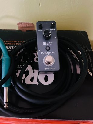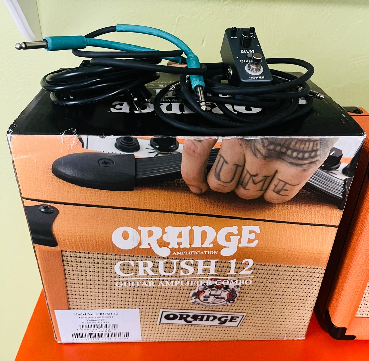 Orange Crush 12 12W 6" Guitar Amplifier And Speaker Combo, Orange Plus Delay Pedal And Guitar Cables
