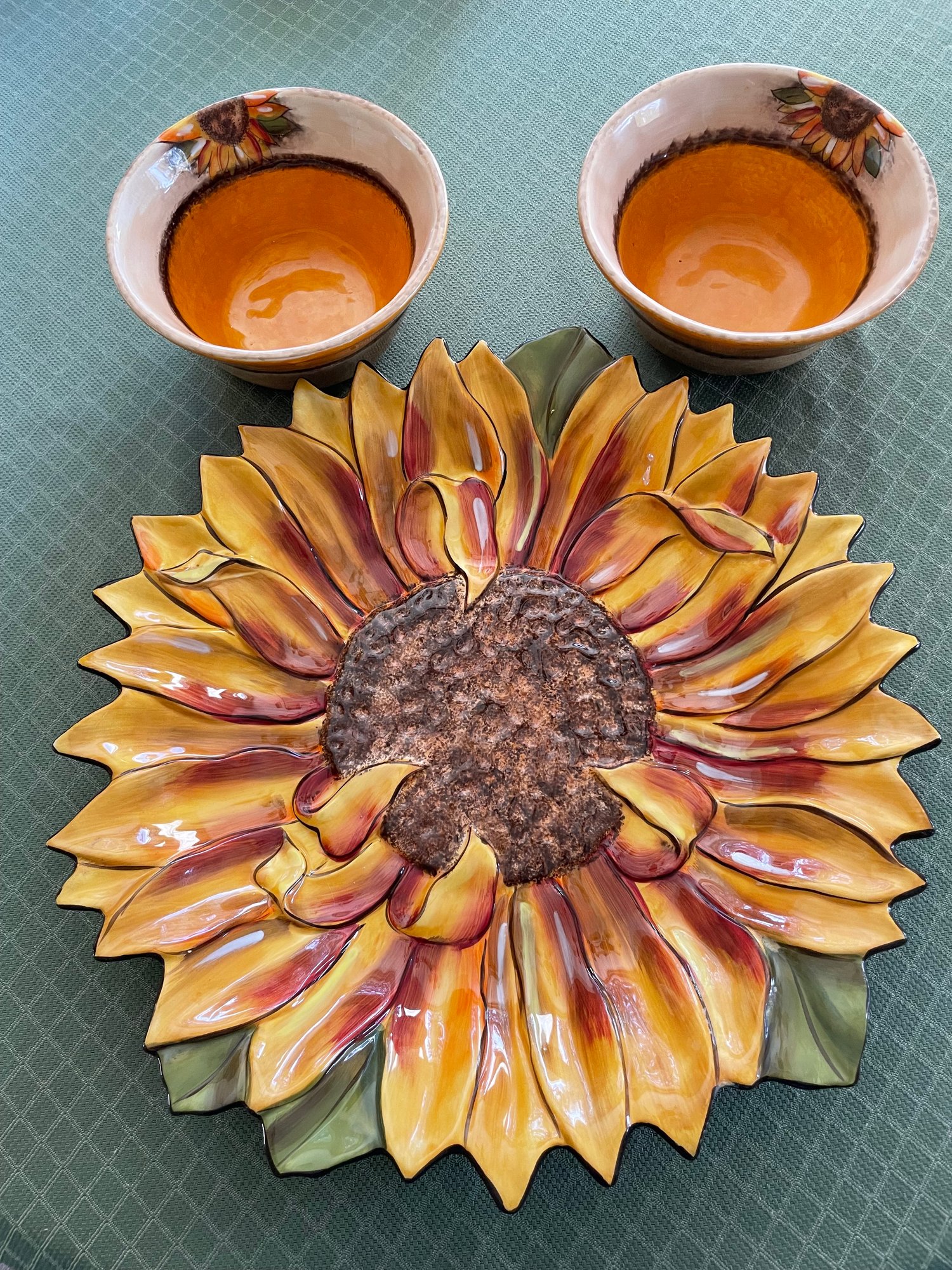R3 Stonelite Clay Art Sunflower Platter And Two Bowls
