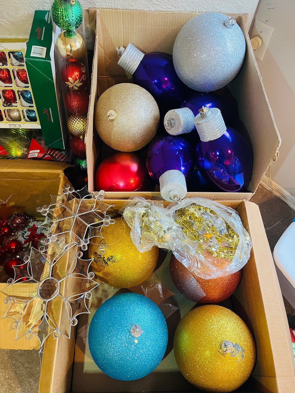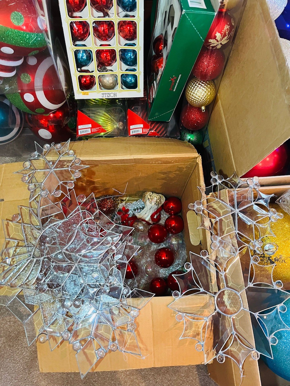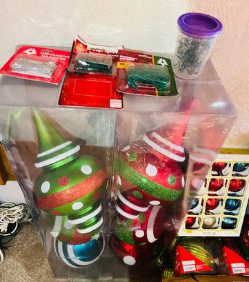 R4 Assortment Of Christmas Ornaments Large And Small Plus Hangers And Hooks