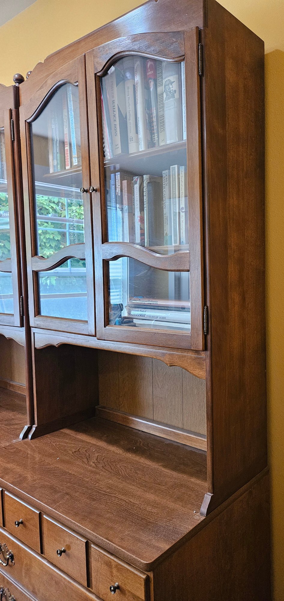 R6 2 of 2 Ethan Allen solid wood hutch with dovetail construction.