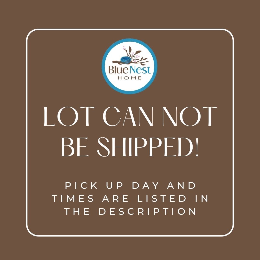 Blue Nest Home does not provide alternate pick up times. Buyers agree to forfeit purchase without refund if they cannot make the pickup time. By placing a bid you agree to forfeit your purchase without refund if you cannot make the posted pick up time, pay the shipping costs or make prior arrangements.