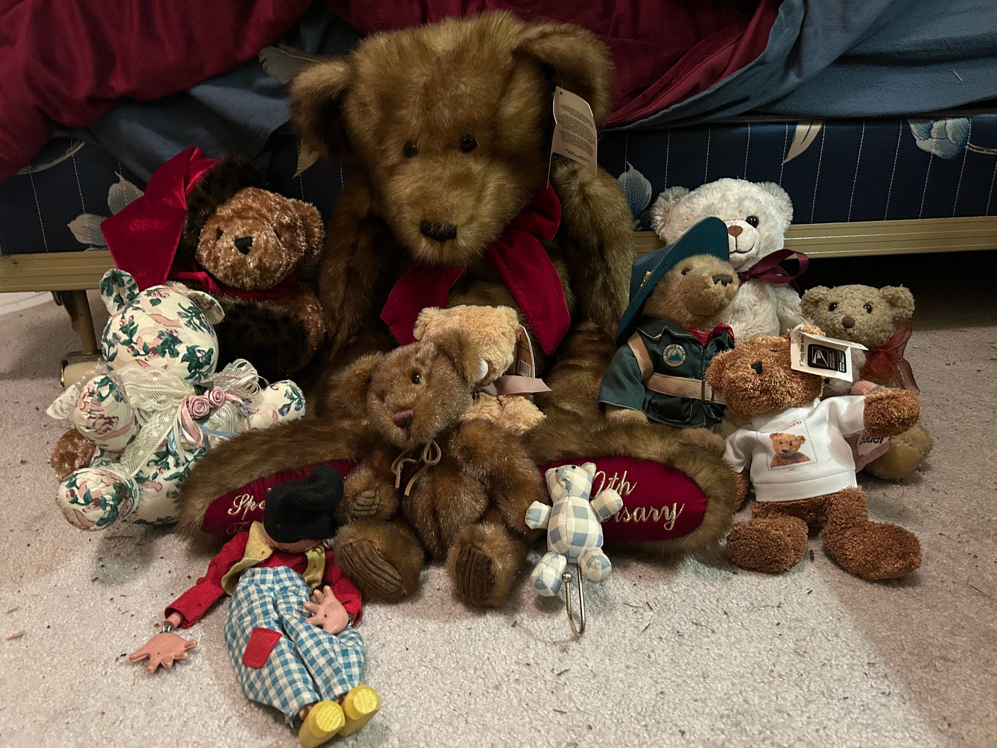 R6 Lot Of Stuffed Bears, 100th Anniversary Teddy Bear, Park Ranger Teddy Bear, Floral Teddy Bear And More, Ceramic baby angels