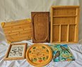 R7 Bamboo Drawer Organizer, Kitchen Decor, Wall Clock, And Three Cutting Boards