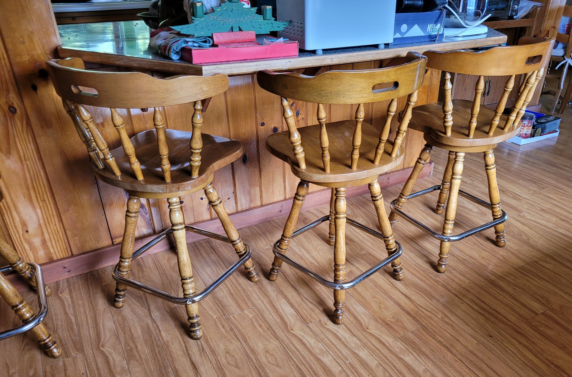 R7 Wooden Farm Style Swivel Barstools Set Of 4