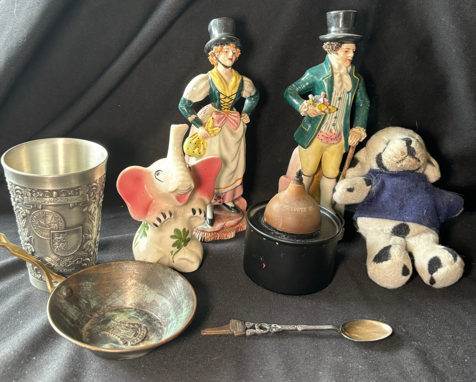 R7 Zinn Becker Stuttgart, Small Spoon Marked Laboe, Hollowick, Figures Marked Italy And More