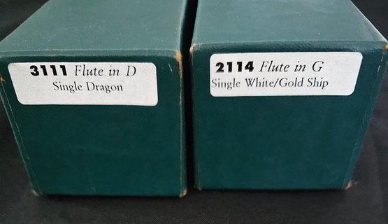 R8 Hall Crystal Flutes, Single Dragon image Flute in D, Single White Gold Ship Flute in D