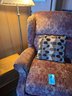 Recliner measures 36in x 36in x 42in and has some damage which is pictured. The pillow is included. The wooden side table measures 18in x 11in x 18in. The lamp measures 56in H. Bring the appropriate vehicle to remove. Heavy bring help. Untested. The table has scratches and water damage.