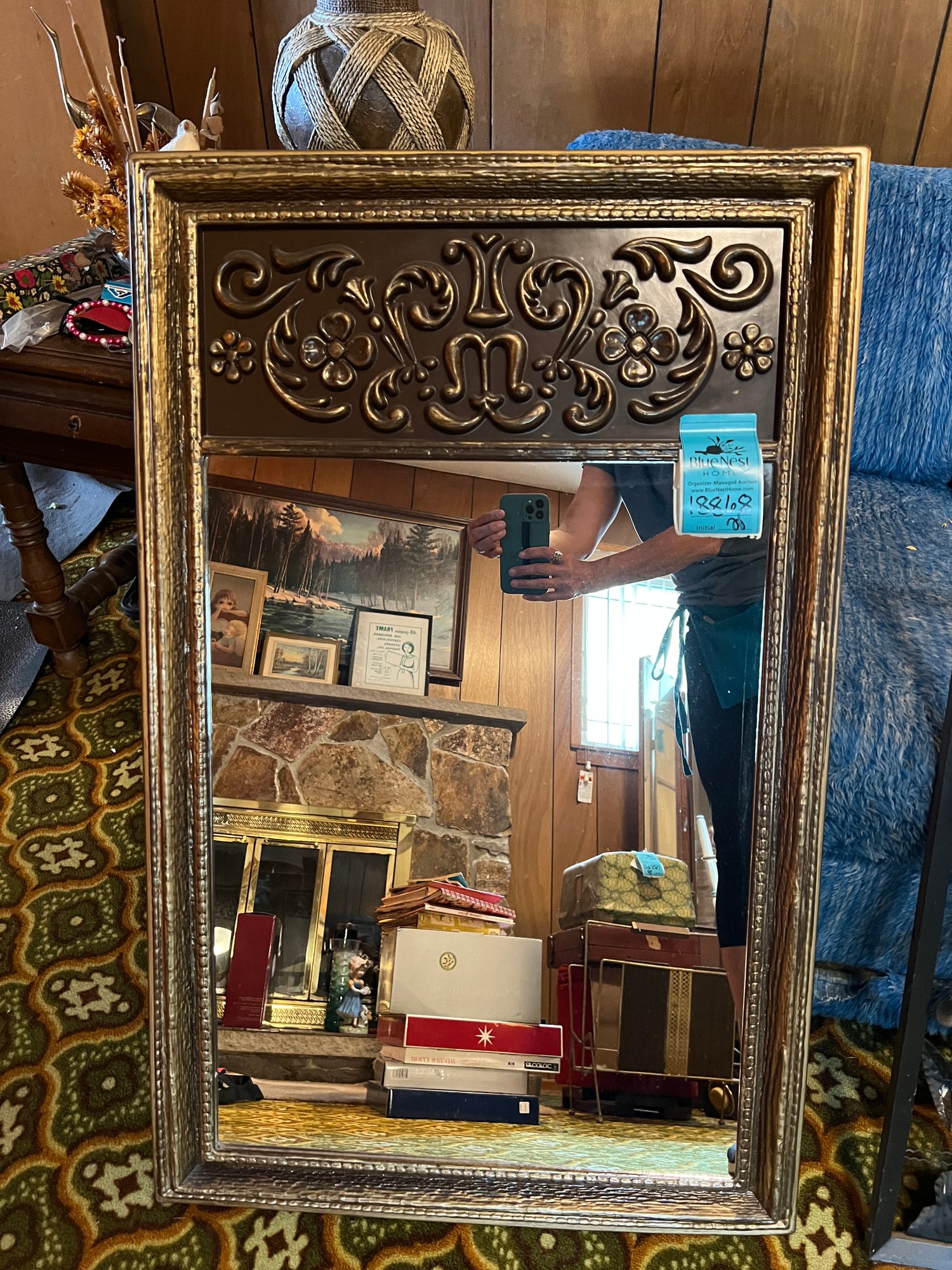 Rm8. Wall Mirror Plastic 36in x 23in, Metal Wall Hangings 27in x 9in