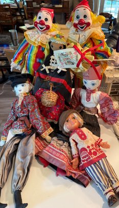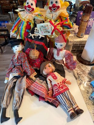 RUS Collection Of Vintage Dolls Including Clown And Folk Dolls