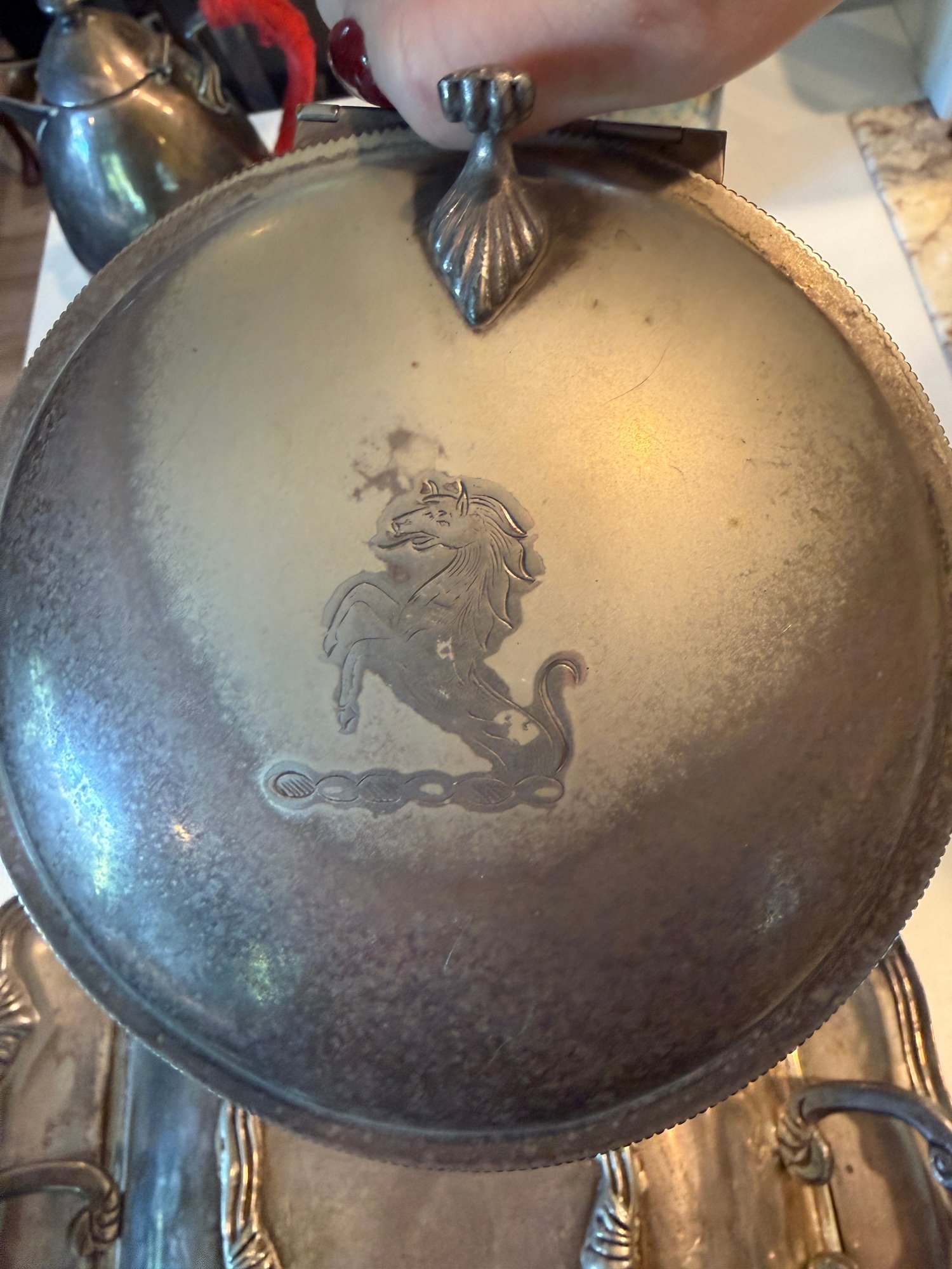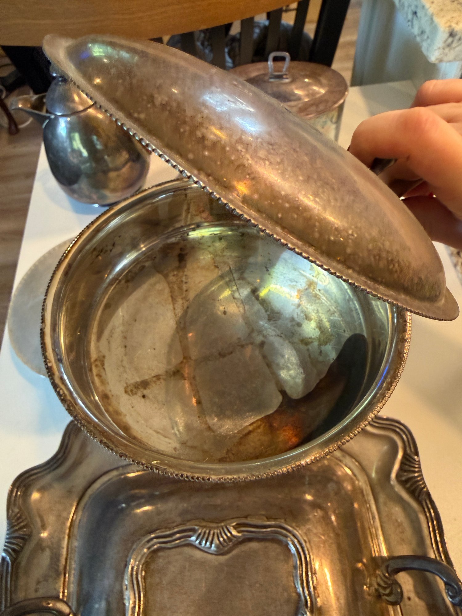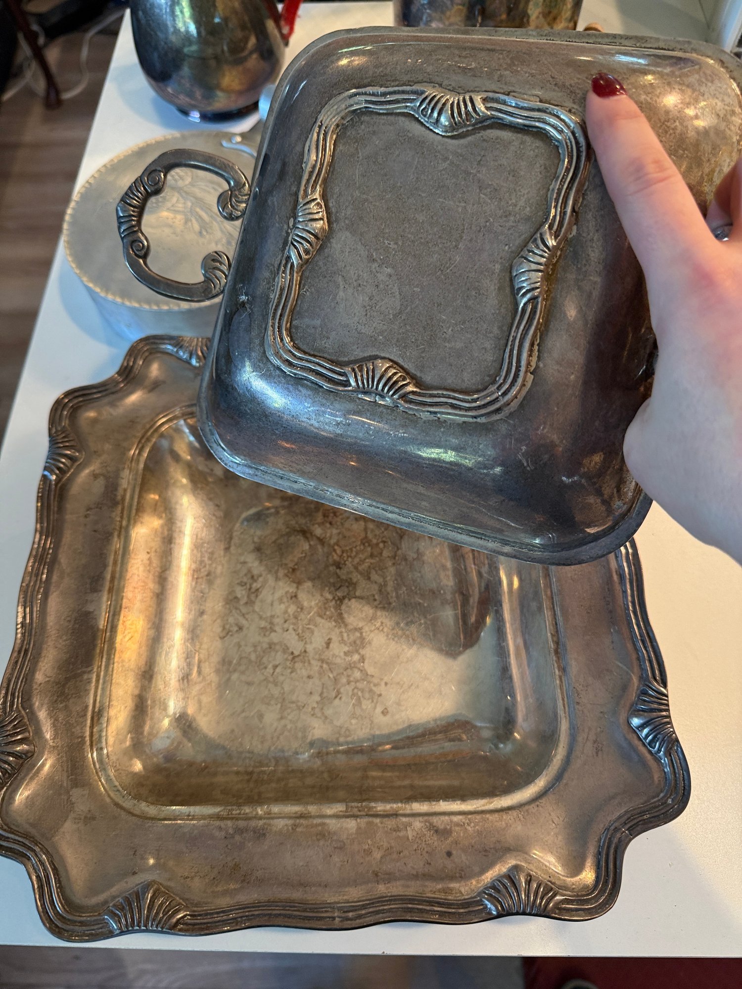 RUS Serving Ware Including Two Butler Crumb Trays, A Lidded Serving Dish, And More, Some Silver Plate