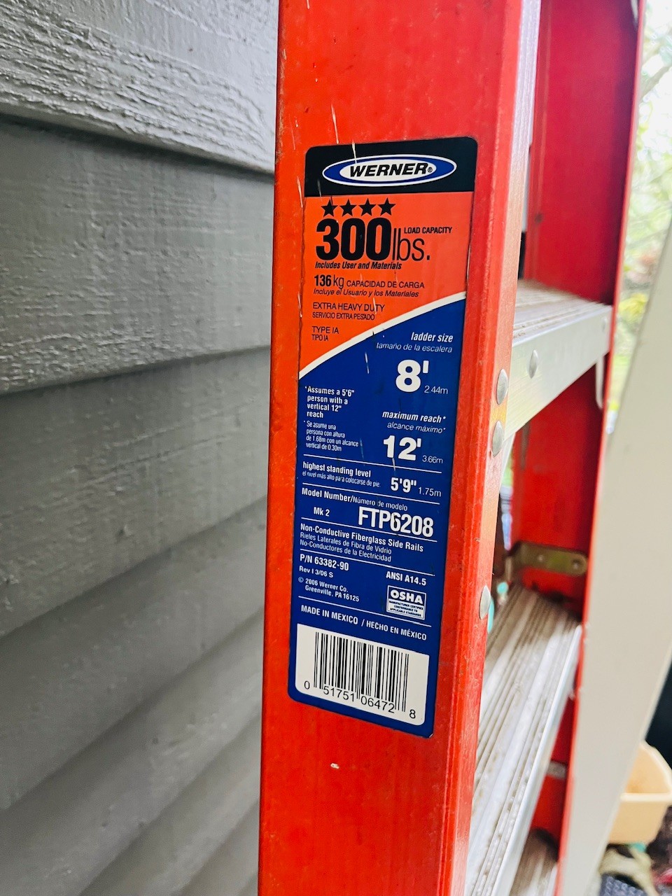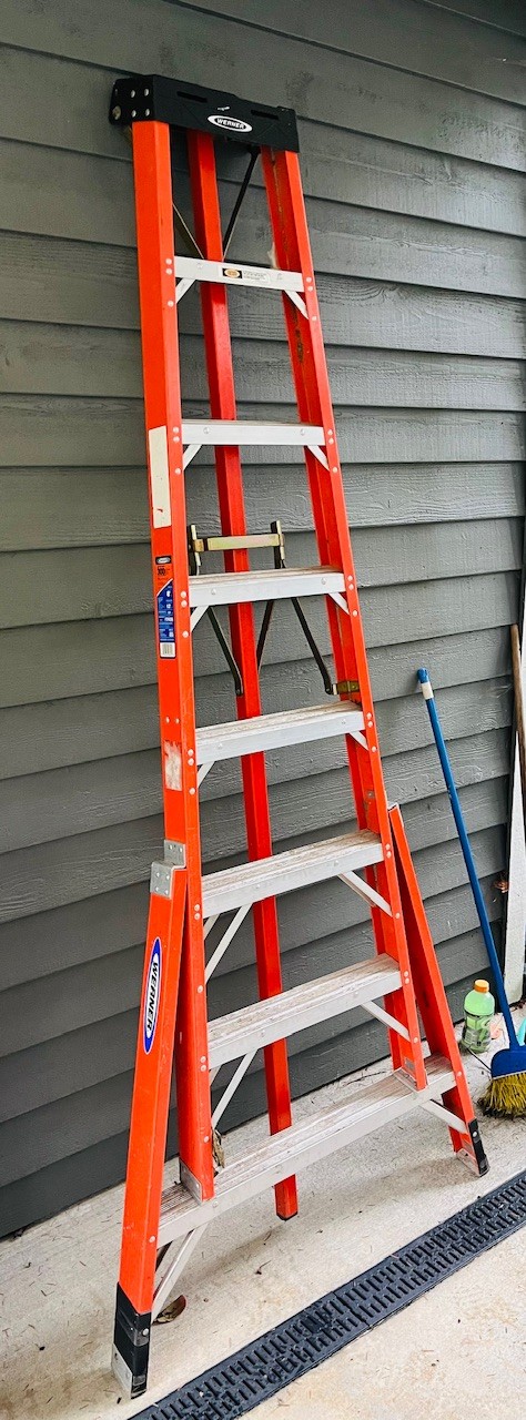 S2 Werner 8 Ft Fiberglass Tripod Stepladder, 300 Lb Capacity
