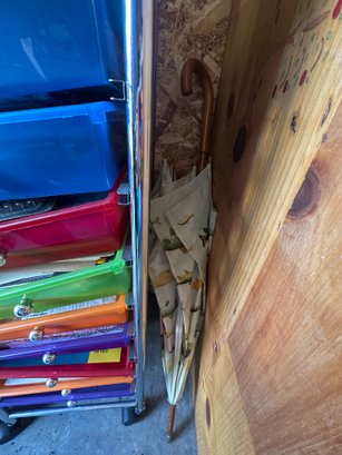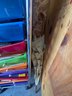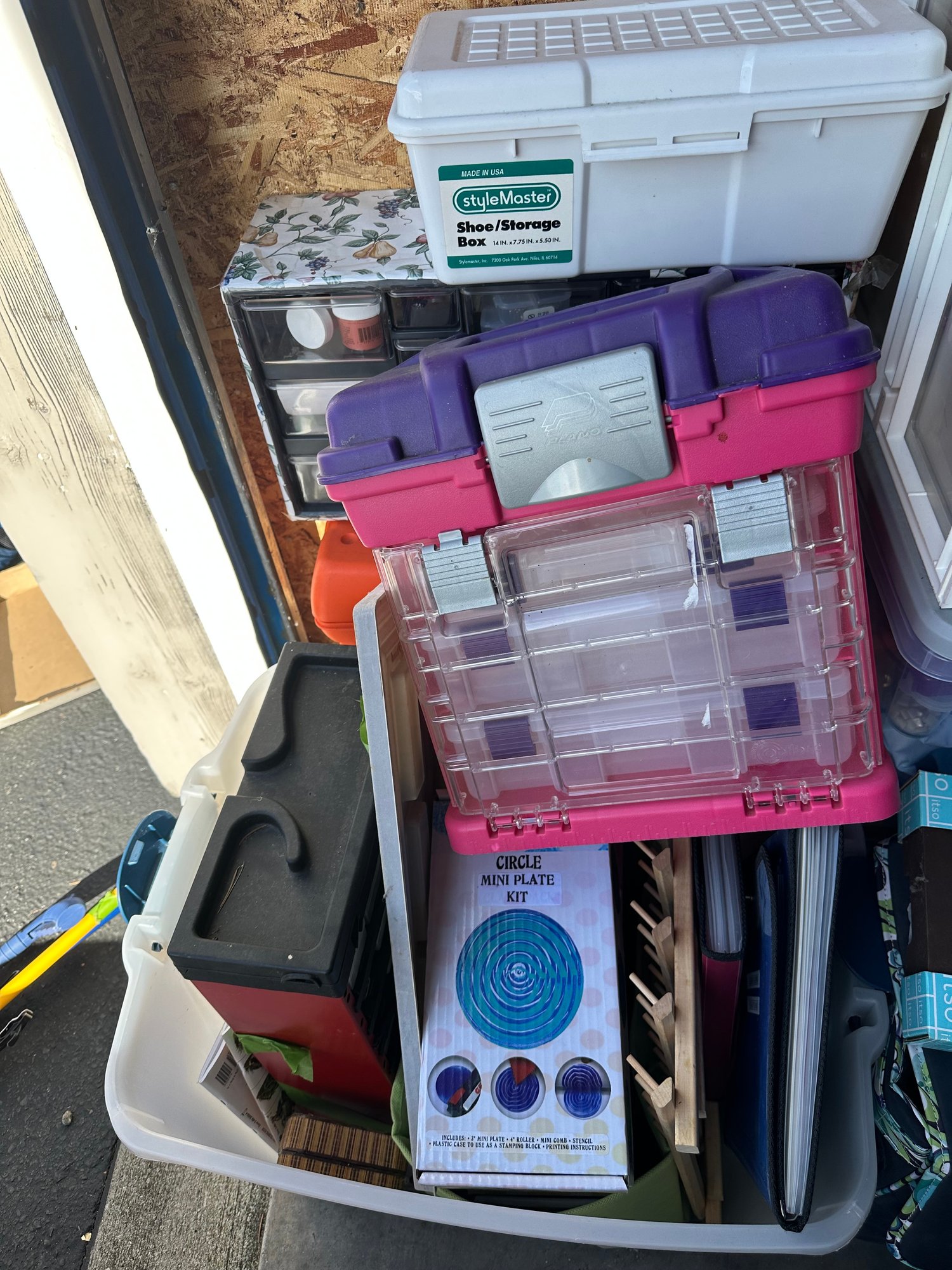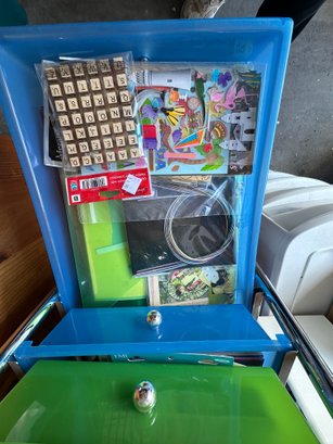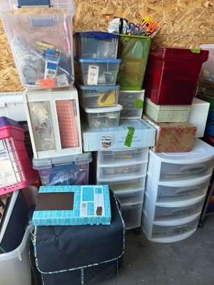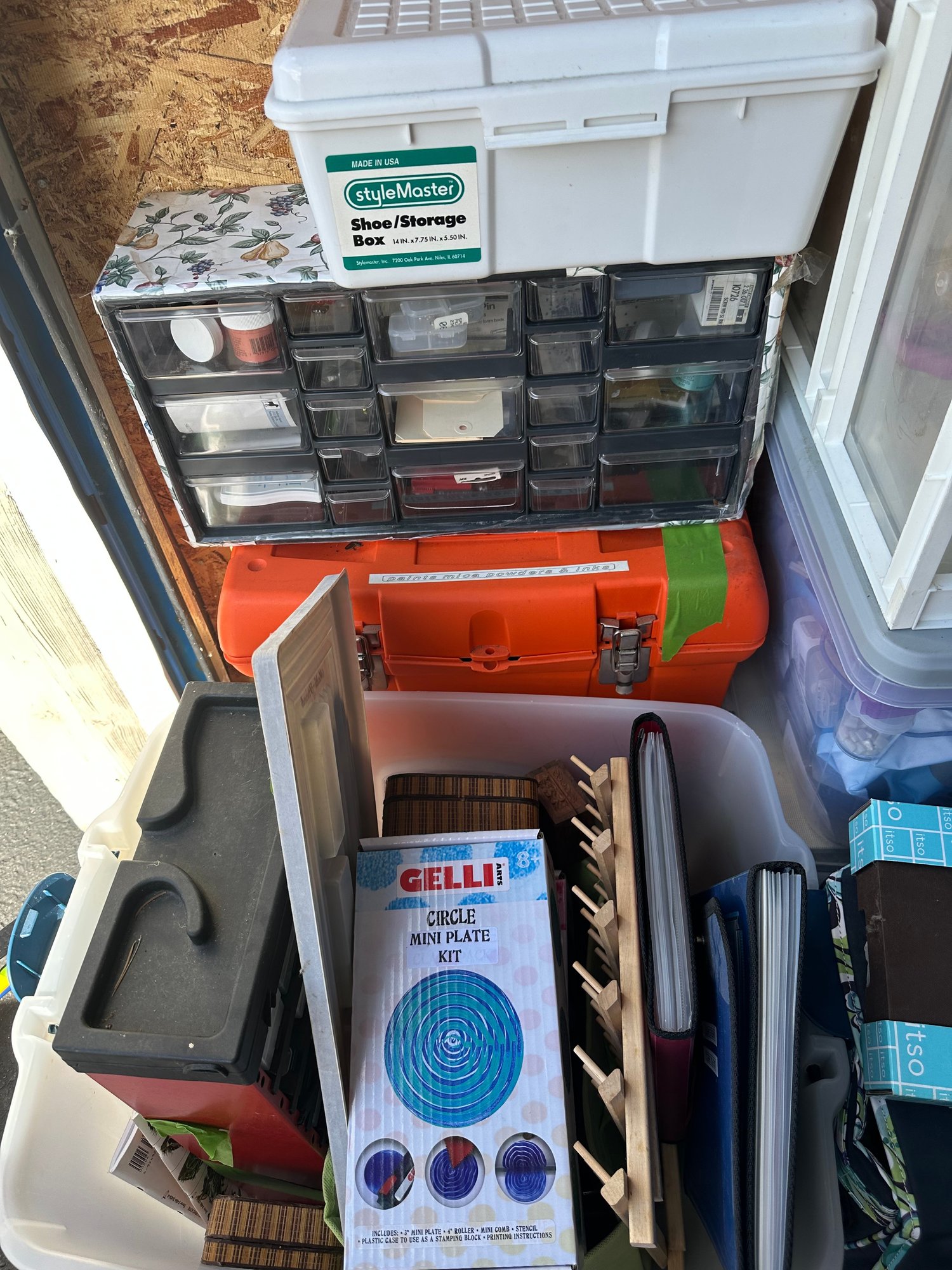 Scrapbook storage rack filled with goodies.