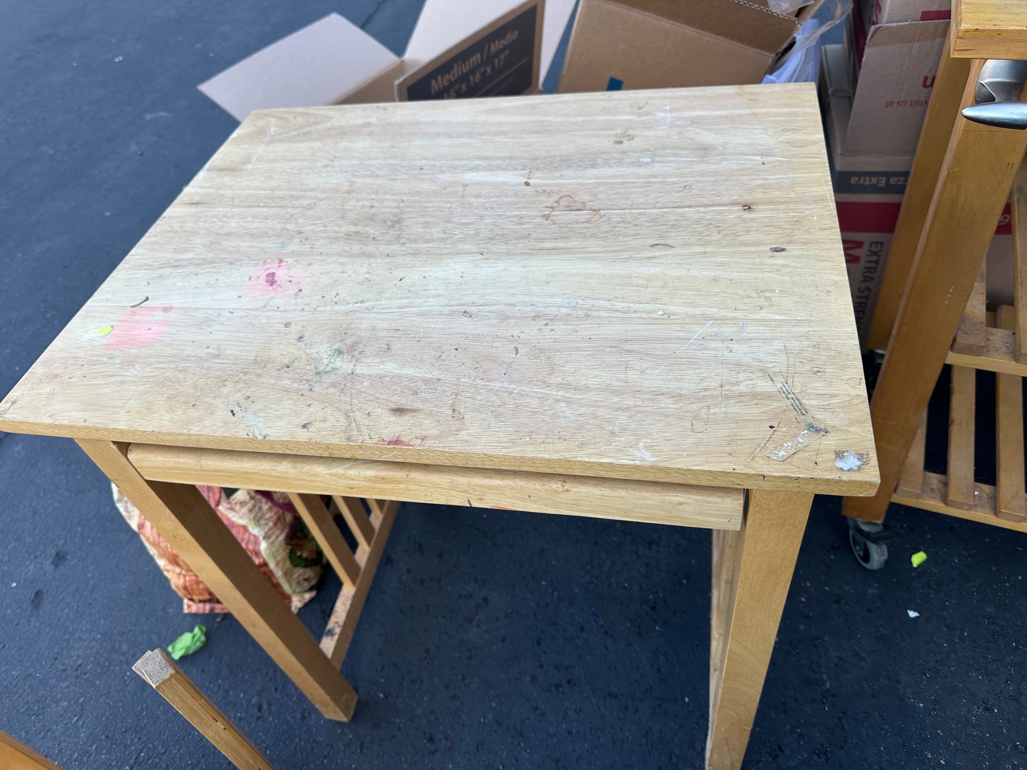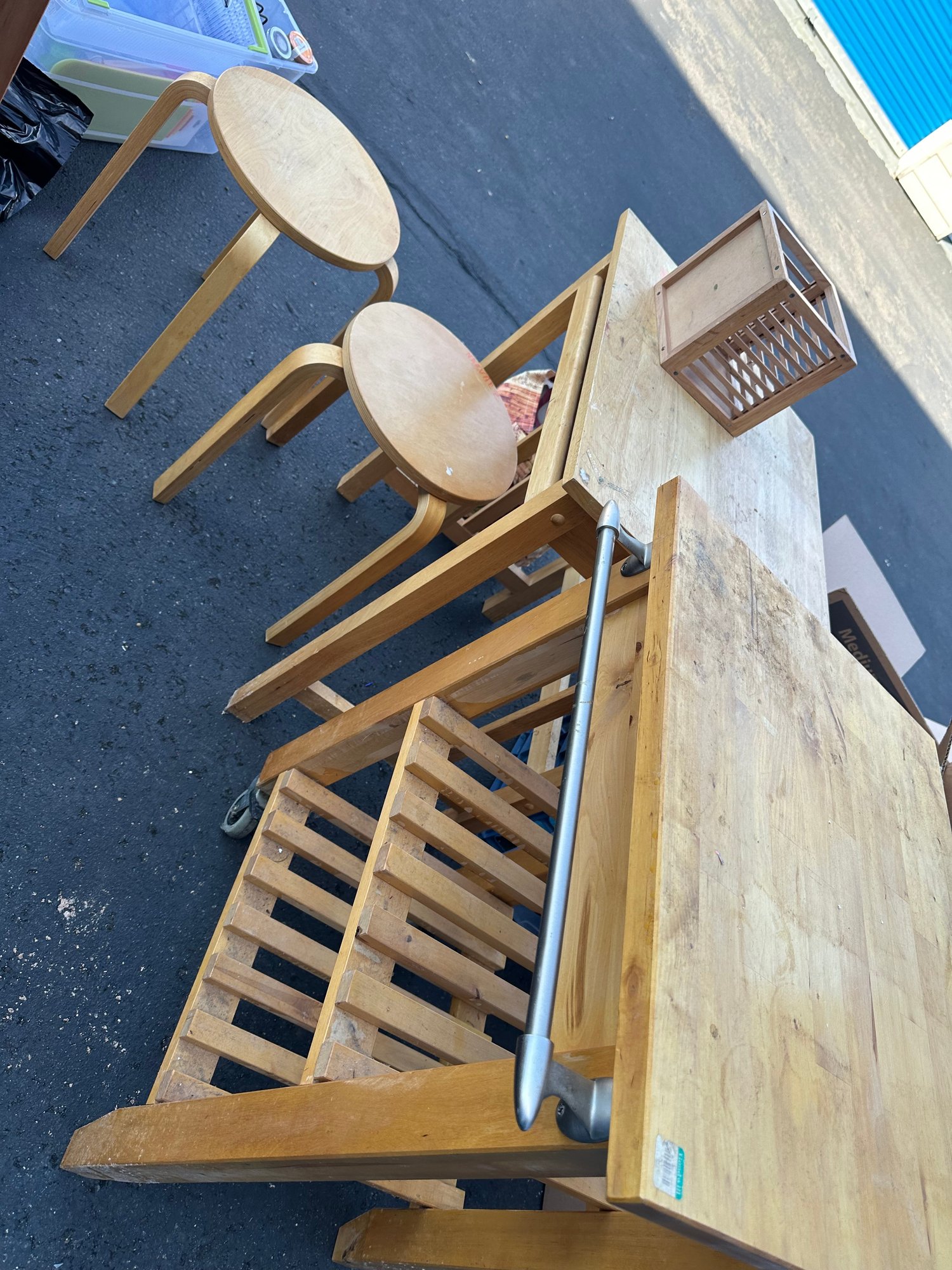 Two Wooden Kitchen Or Work Carts And Stools