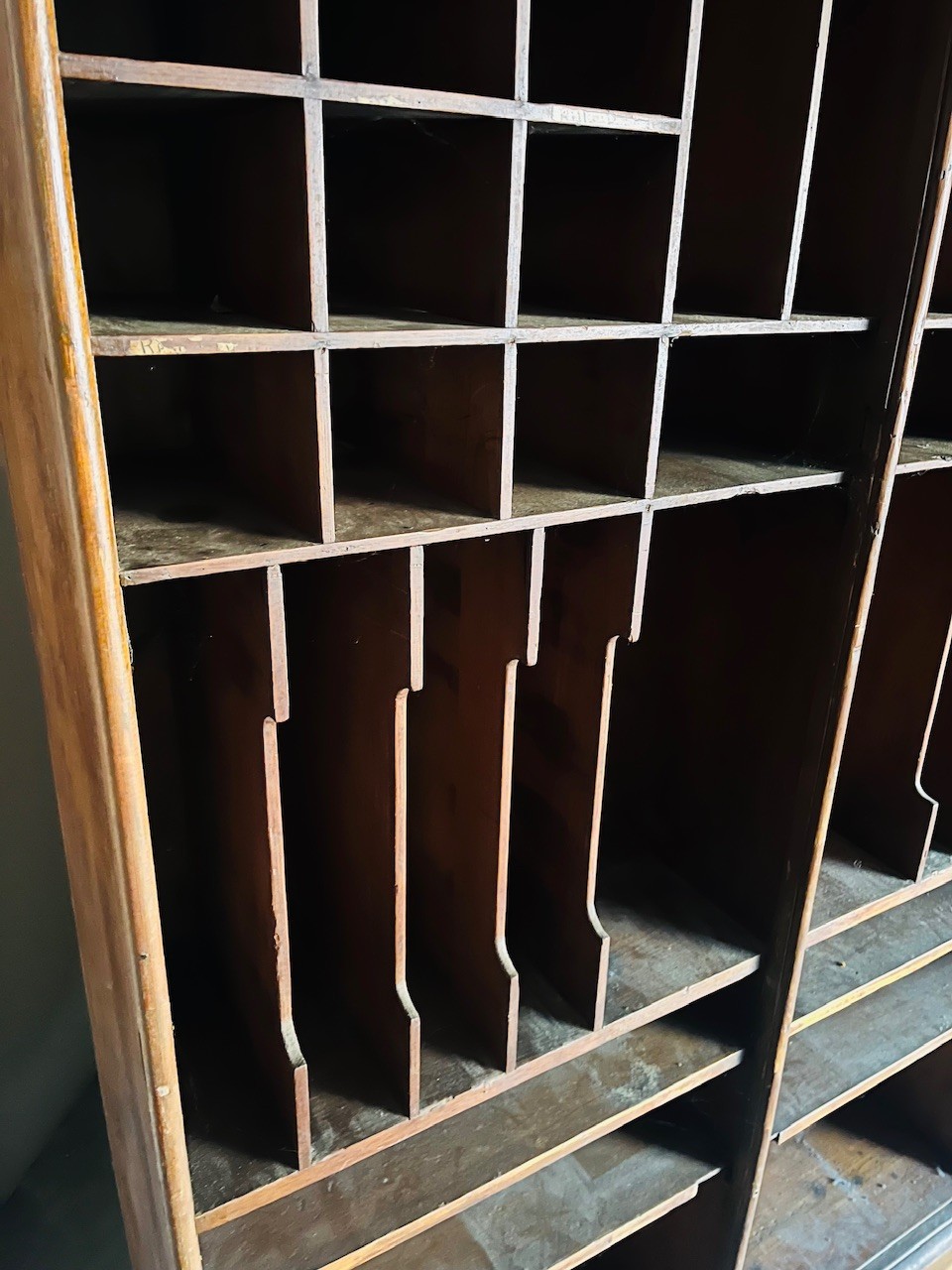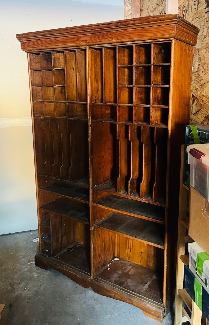 S5 Vintage Antique Mail Sorting Cabinet... this is a HUGE piece that may not come apart.