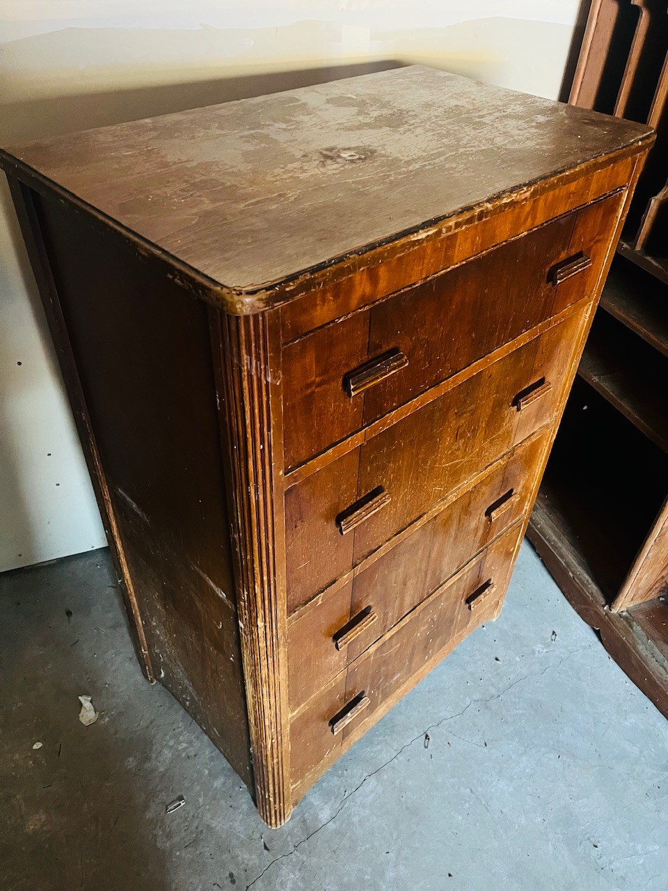 S5 Vintage Art Deco Waterfall Style Four Drawer Dresser
