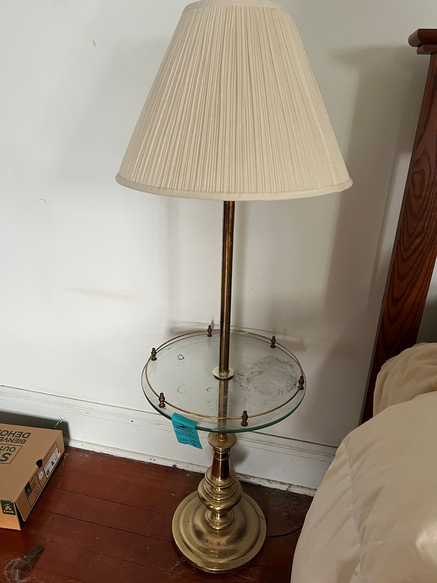 Side Table Lamp. Glass And Brass. 53in X 16.25in