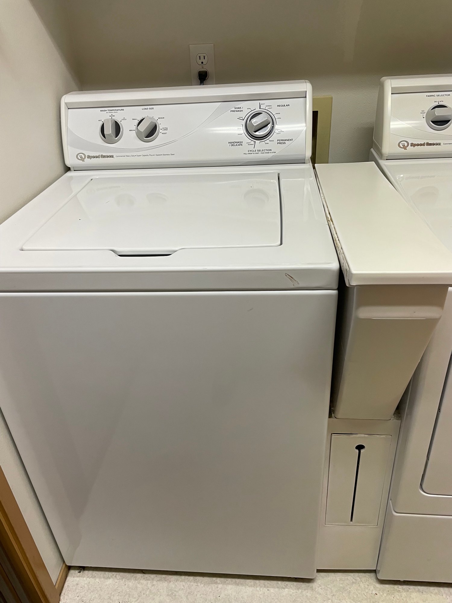 Speed Queen Washer With Additional Compartment To Hold Detergent