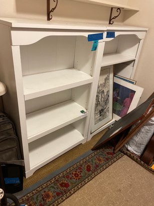 Two 39in x 13in x 48in bookshelves. Contents not included. Needs cleaning. Bring the appropriate vehicle to remove. Heavy. Bring packing material.