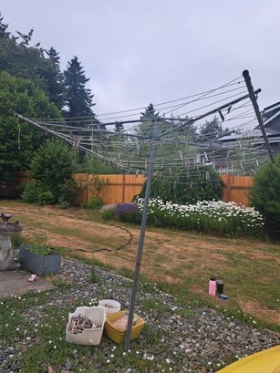 Umbrella Style Clothes Line In Ground And Clothes Pins.