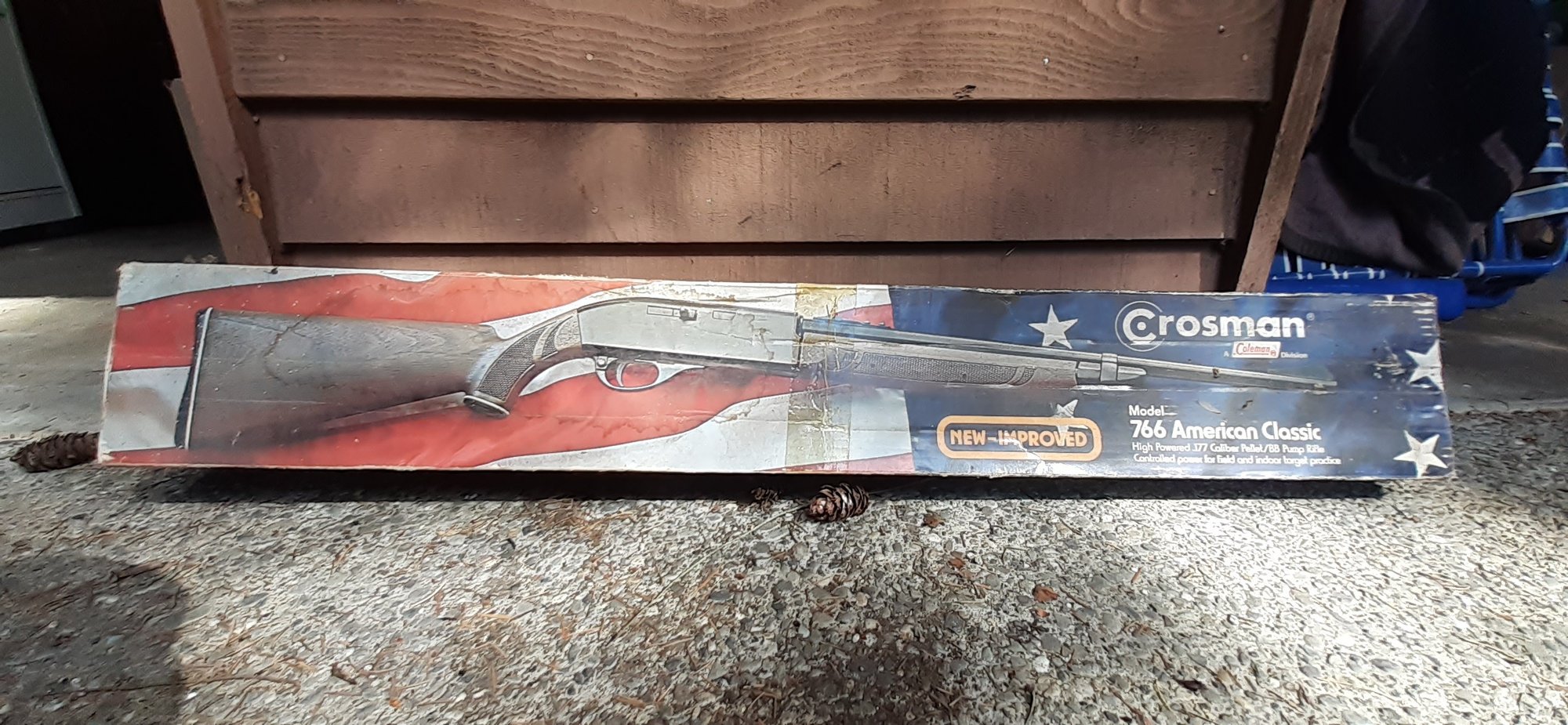 Vintage Crosman 766 American Classic pellet/BB rifle. Comes with original box (box shows wear). Great for collectors or display.