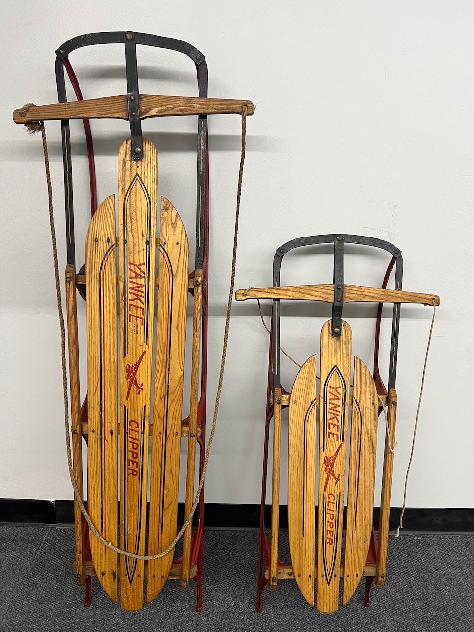 Two Vintage Yankee Clipper Sleds. 56in Long And 41in Long