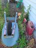 Wheel barrel, gas cans, hoses, 4 crab pots and a Duramax flo'go 14 gallon