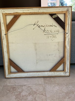 Wood Framed Canvas Painting Signed Max Benjamin On Back. 32.75in X 32.75in multiple paintings by same artist in auction. https://www.arts.wa.gov/artist-collection/?request=record;id=3989;type=701