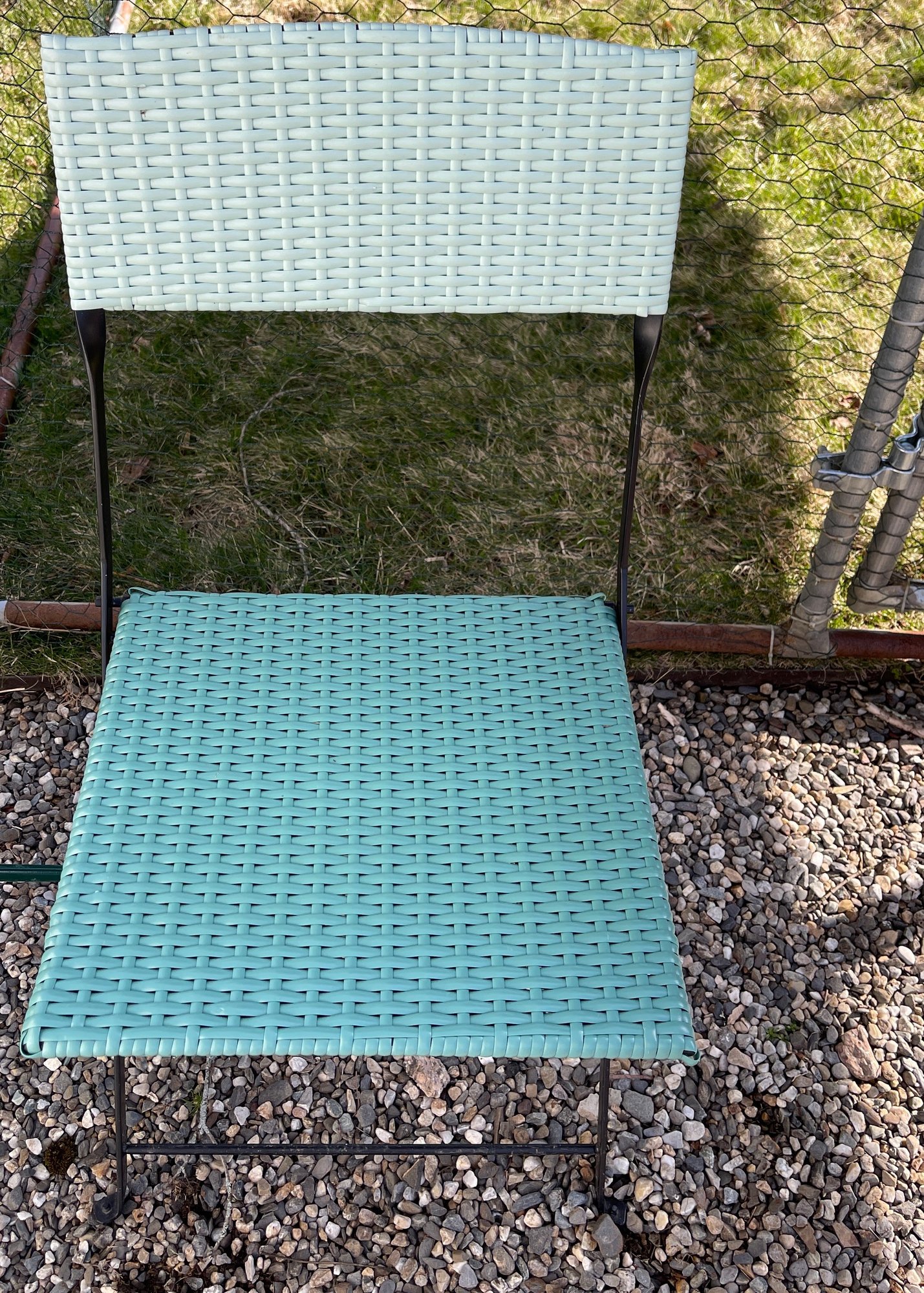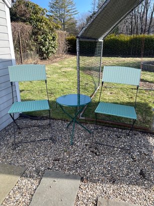 Charming and functional, this 3-piece outdoor bistro set includes a round folding table and two matching chairs, perfect for patios, balconies, or garden spaces. The chairs feature a resin woven-style seat and back in a soft green tone, paired with a black metal frame for a fresh, modern look.