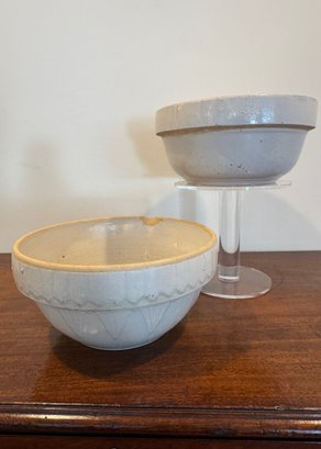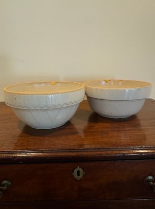 Notes: Consitant with age-appropriate wear, glaze crazing, minor surface marks, and chips to rim imperfections consistent with use. Both bowls have chips to the tops evident in images. Photographs are considered part of the description and condition and supersede all written descriptions.
