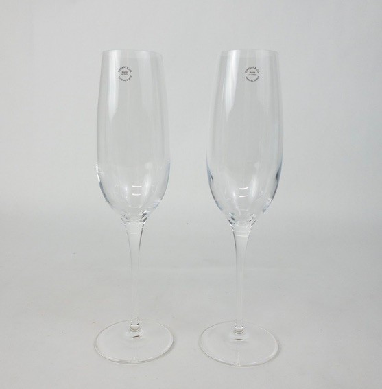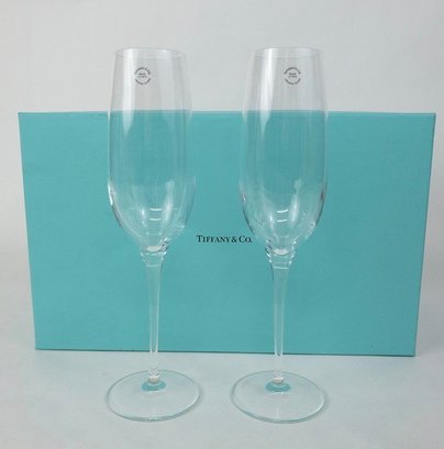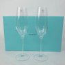 Beautiful Tiffany crystal champagne flutes that would make a lovely engagement or wedding gift.