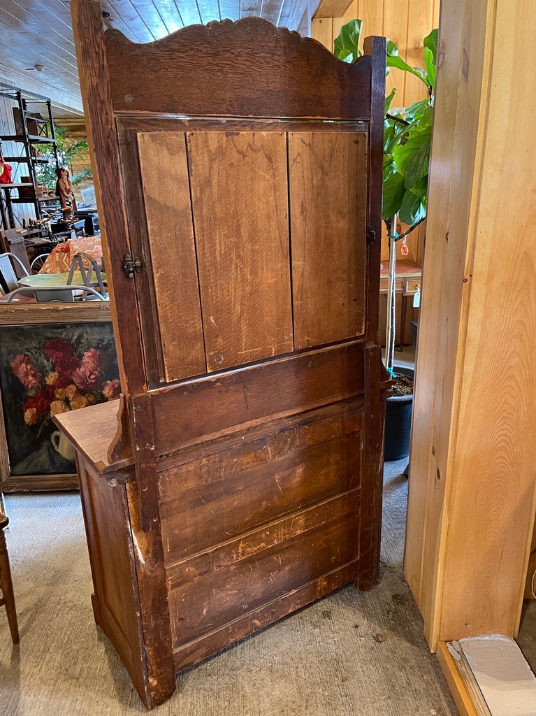 The lower case offers practical storage with two drawers over a double-door cabinet. Original-style metal pulls enhance the period character, while the paneled doors and gently curved apron base reflect traditional craftsmanship.