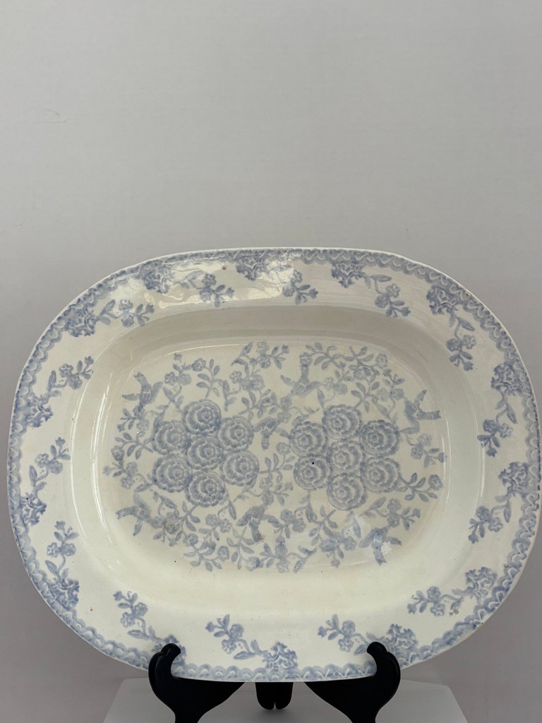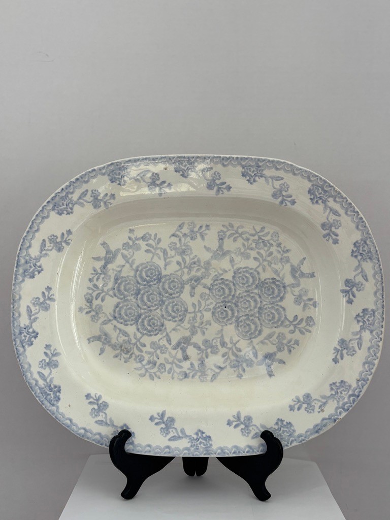 English transferware with floral motifs and bird imagery likely dating to the Victorian era circa 1850's-1900's.