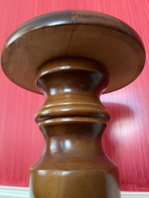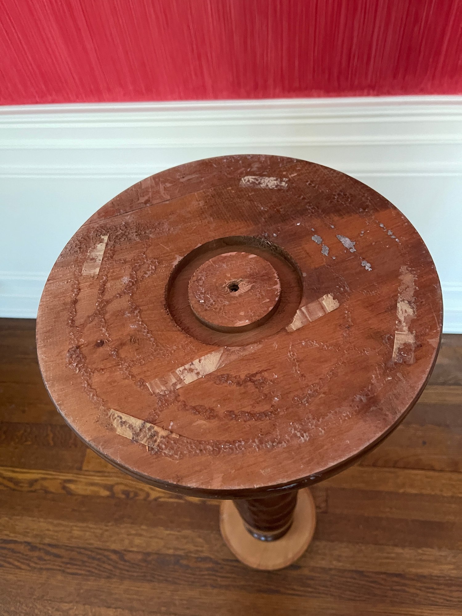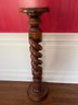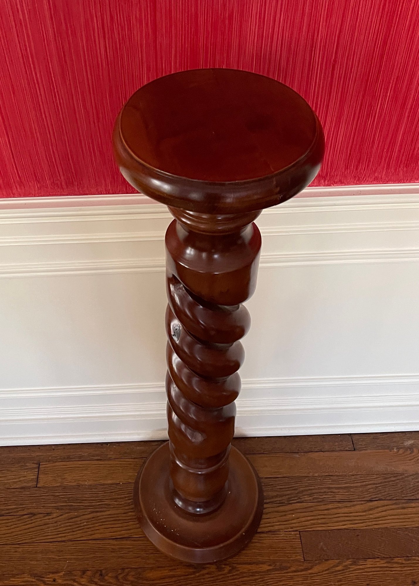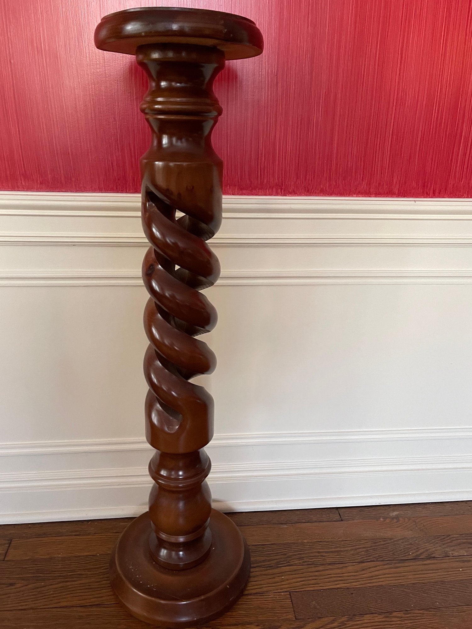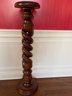Vintage wooden pedestal often called a Barley Twist can be used for many things such as a plant stand, statues or display. Constructed from solid wood, top measures 9.5"