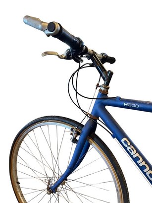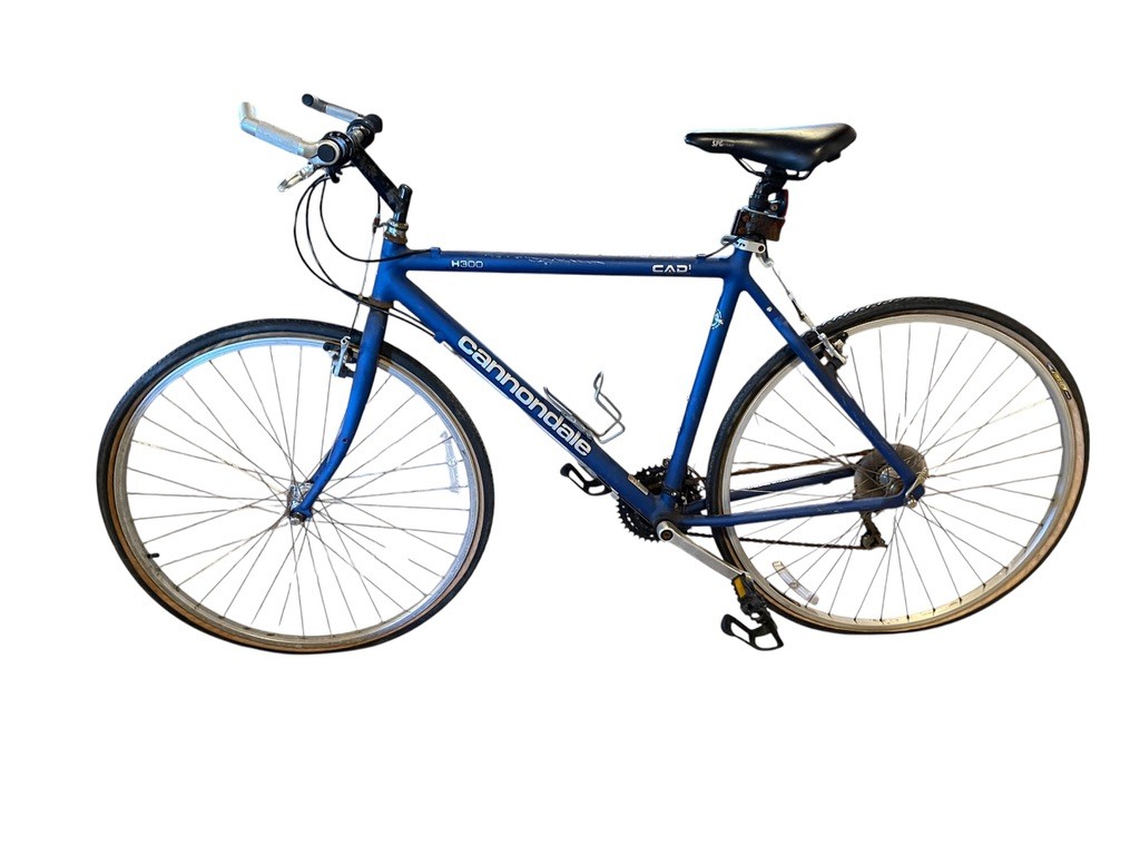 Lightweight and responsive Cannondale H300 hybrid/flat bar road bicycle featuring a durable CAD1 aluminum frame. Designed for speed and efficiency with the comfort of flat handlebars, this bike is ideal for commuting, fitness riding, or longer road rides. Bike size is 20" or 50.8 cm