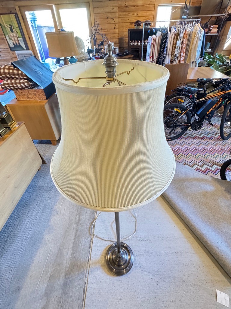 The tall profile provides excellent ambient lighting—ideal for a living room, reading corner, or bedroom. Fredrick Cooper designer shade measures 13.5 at bottom.