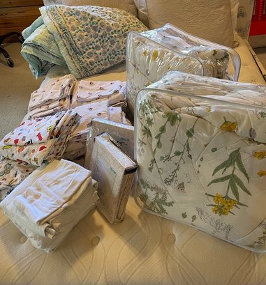 Six twin bedding sets, 2 comforters and miscellaneous linens