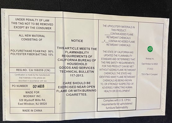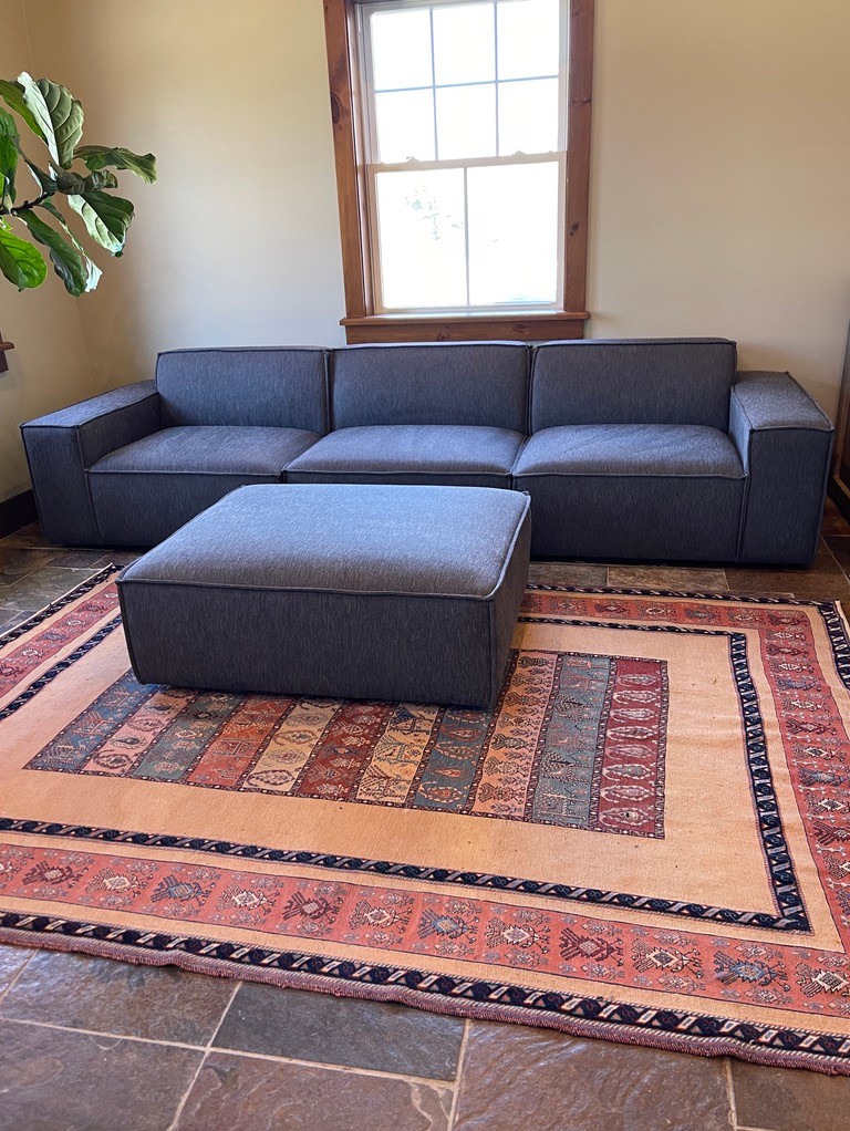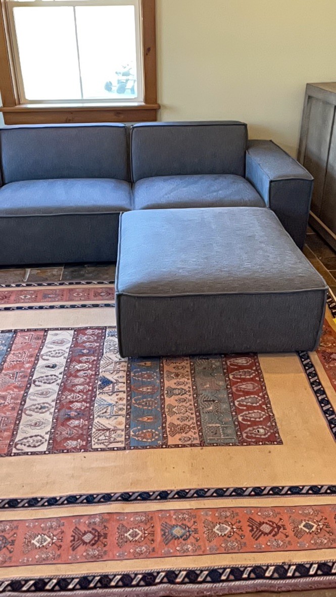 Includes a large matching ottoman, ideal for use as a chaise extension or coffee table alternative. Ottoman 34.5" x 41" 16h