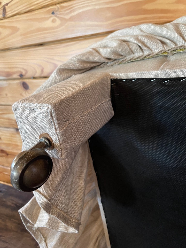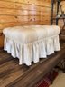 The generously padded top provides comfortable seating or a place to rest your feet, while the tailored skirt adds softness and traditional appeal. Ideal for use as a footstool, extra seating, or an accent piece in a bedroom or living space.
