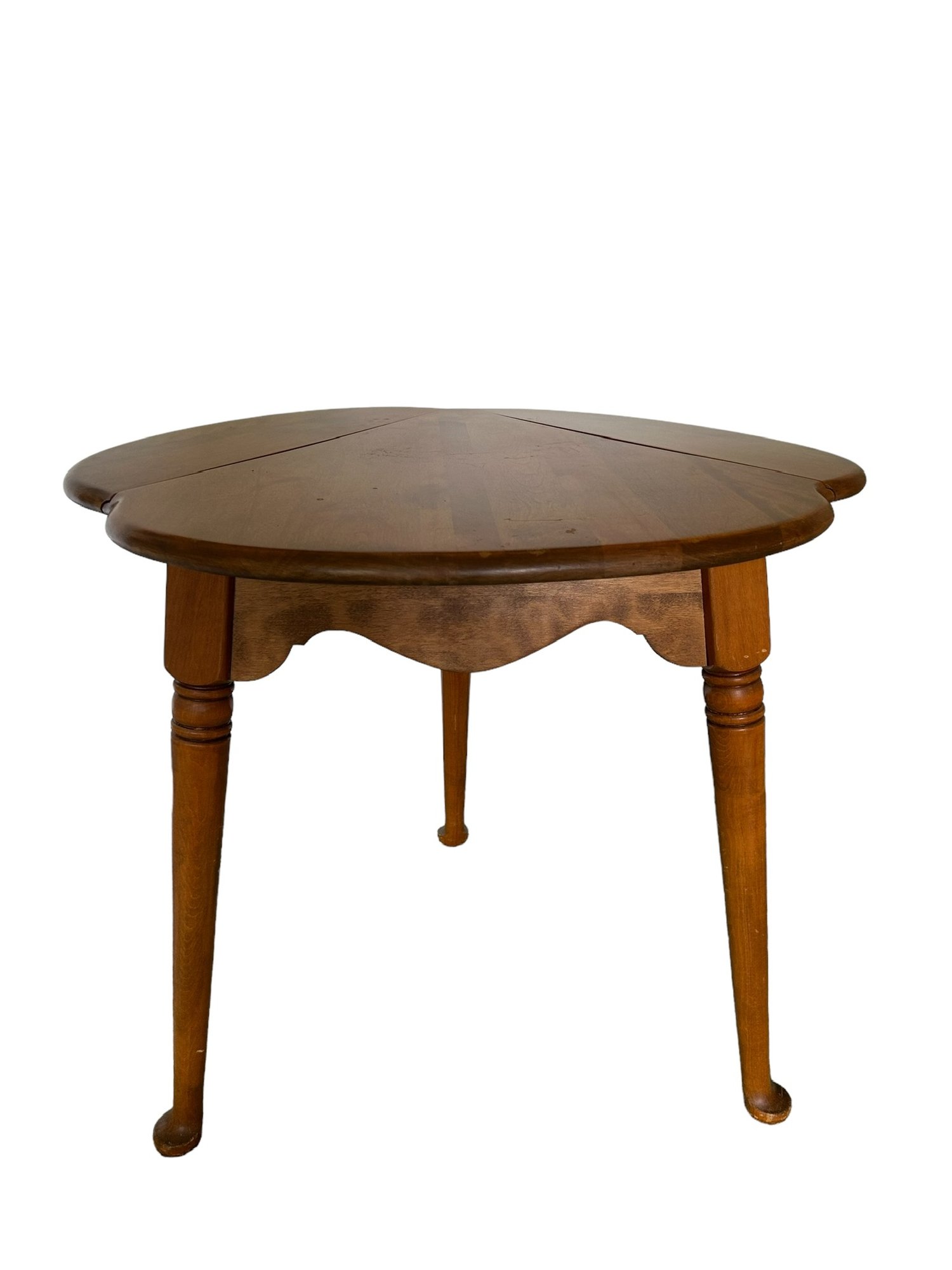 Two leafs fold down to make a corner table.