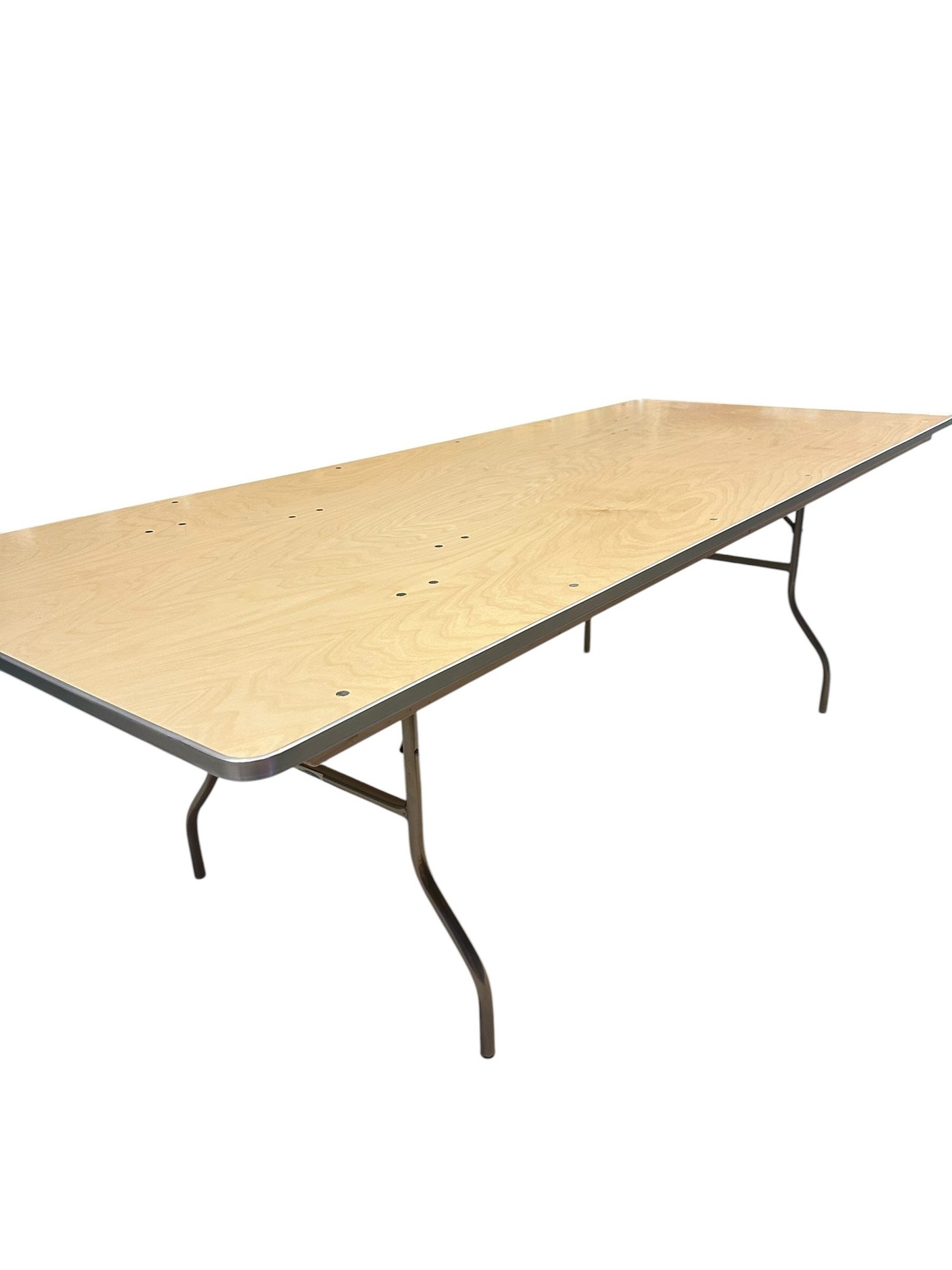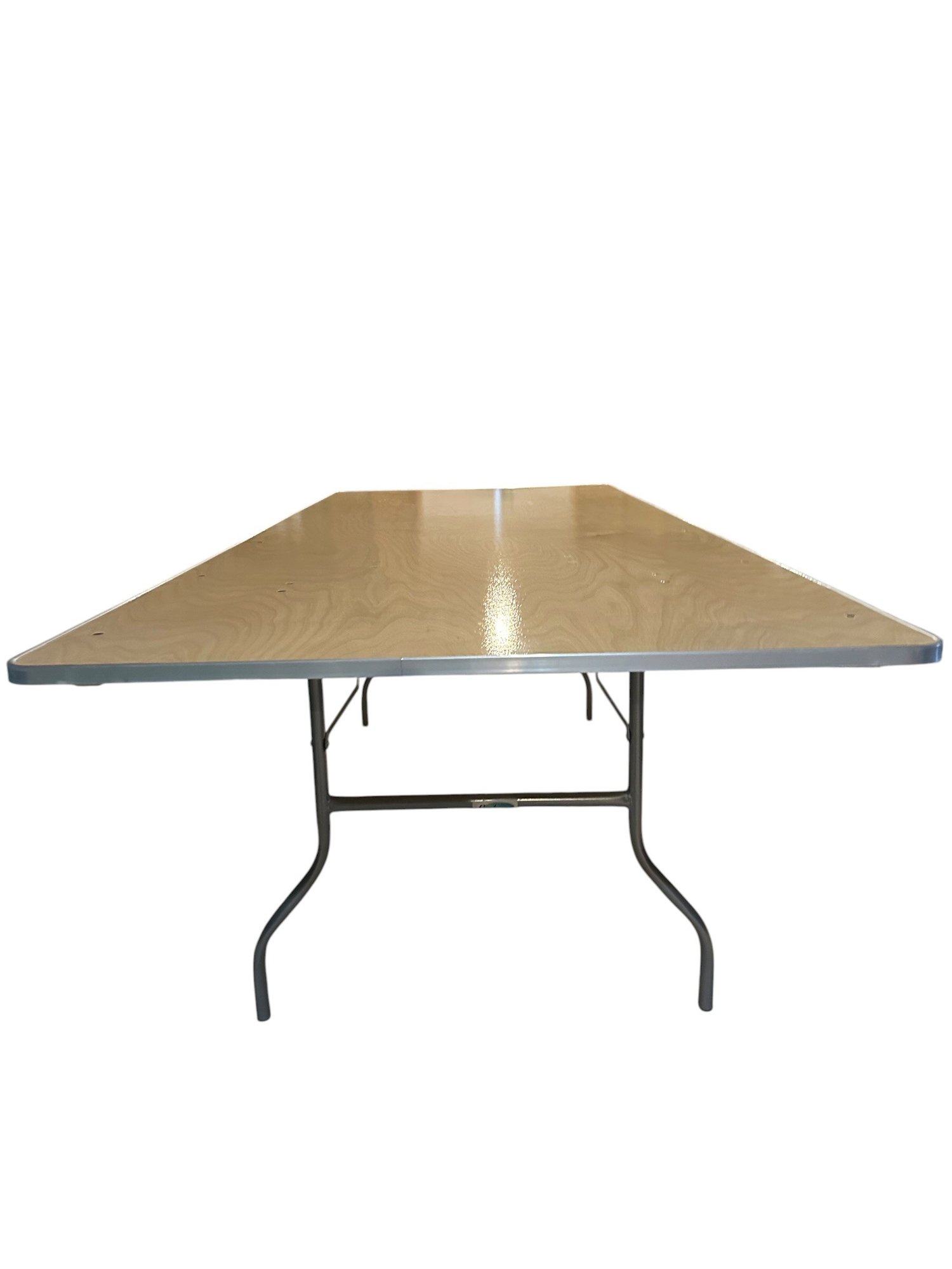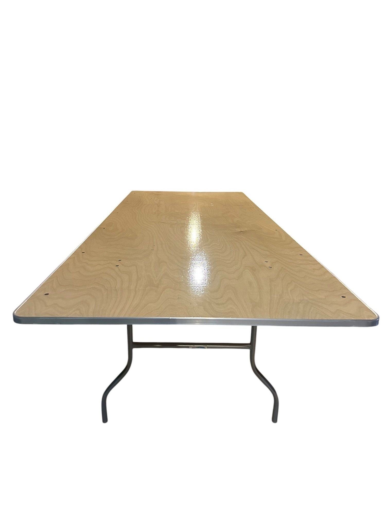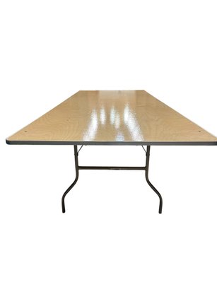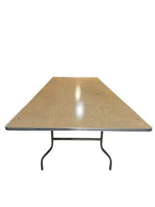 Sturdy and versatile folding banquet table featuring a wood-grain laminate top with metal edge banding and folding steel legs. Designed for durability and easy storage, this table is ideal for a wide range of uses including events, catering, workshops, garage use, or additional workspace.